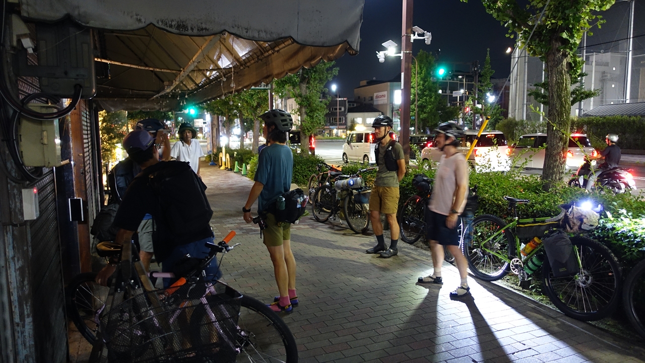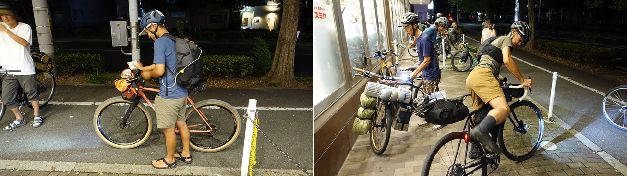 あいさつもそこそこに、ナイトライドの必需品・高輝度ヘッドライトの電源をオンにしたら、浮き立つ気持ちでペダルを踏み込み、一行は買い出し先の千本北大路にあるイズミヤへ。
