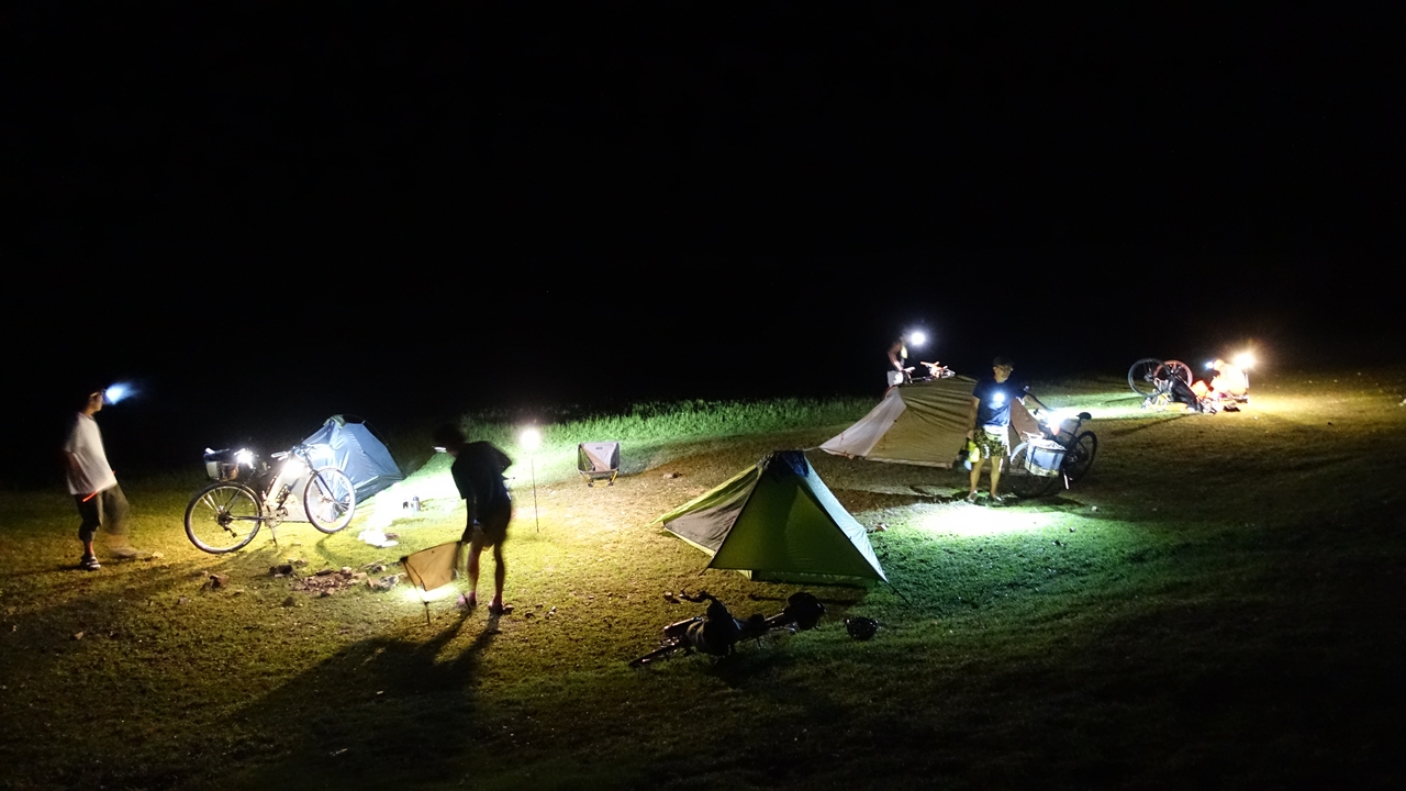 最高のコンディション下で設営を始めます。夜も遅いので、パパっと済ませちゃいましょう。