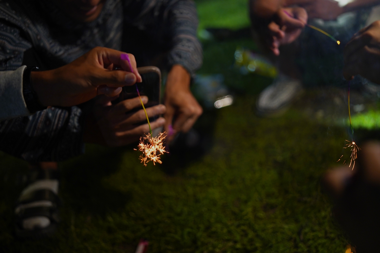 今夜の締めくくりは、夏の終わりにふさわしい線香花火(N様、ありがとうございます)。