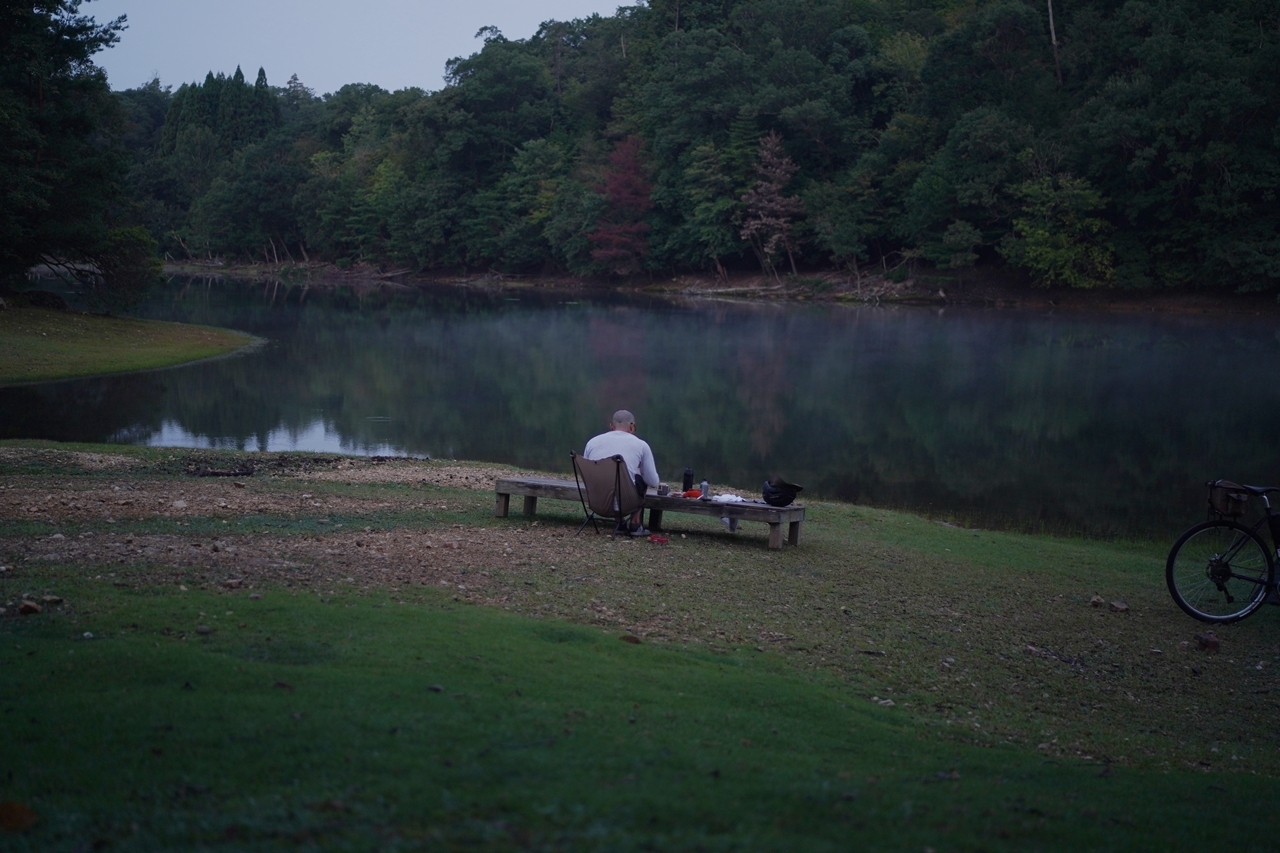 朝焼けが対岸にかかり始めると、あたりはどんどん色を増していきます。ひとりひとり、思い思いのモーニングタイムです。