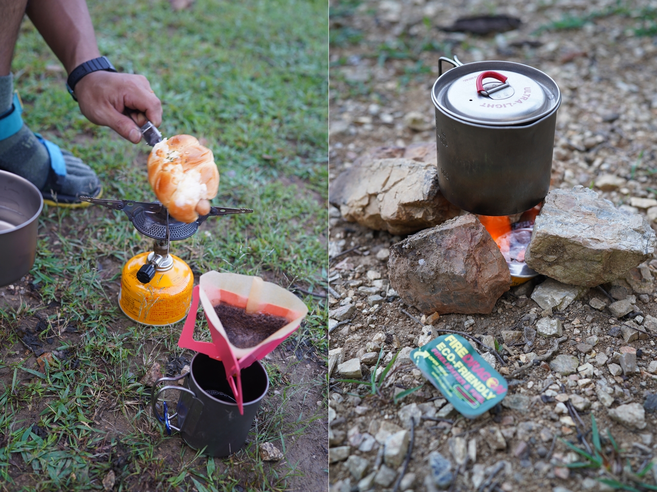 びしょびしょになったテントとチェアをはたきつつ、淹れたてのコーヒーで温まりましょう。