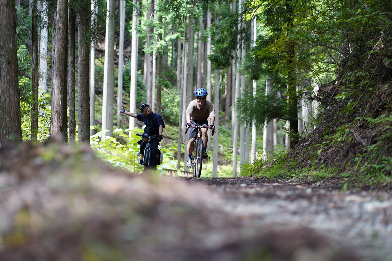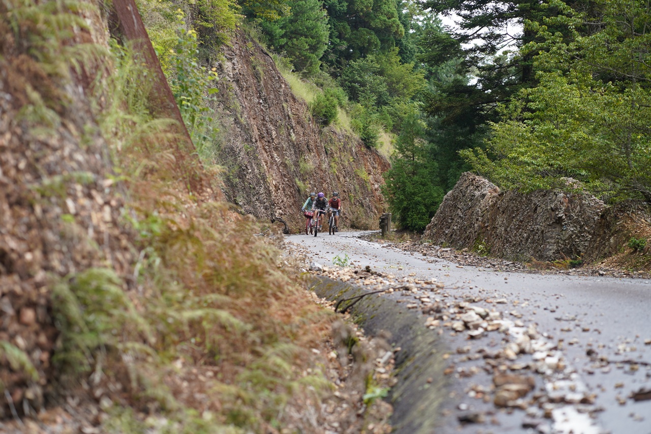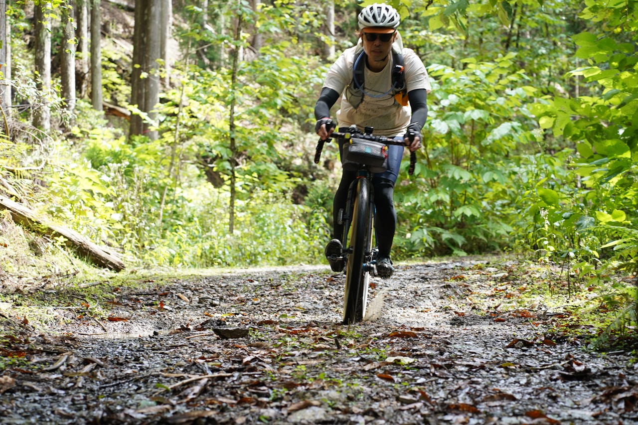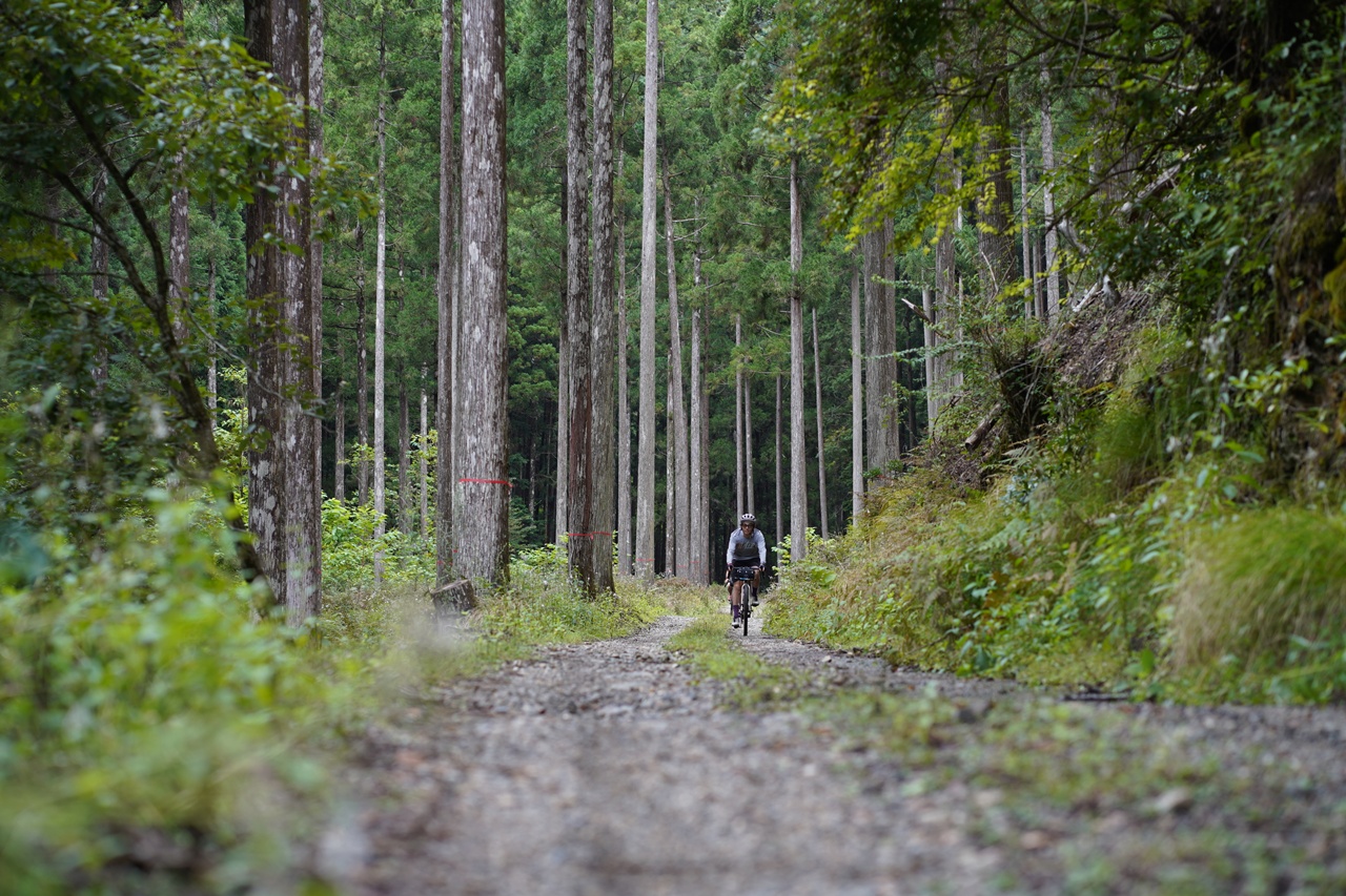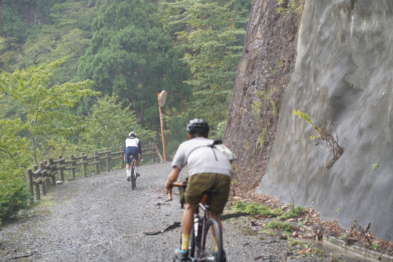 そしてもうひとつのポイント、試走で那須さんとたまたま見つけた最後のグラベル区間、基幹林道から下る枝道・西谷林道。