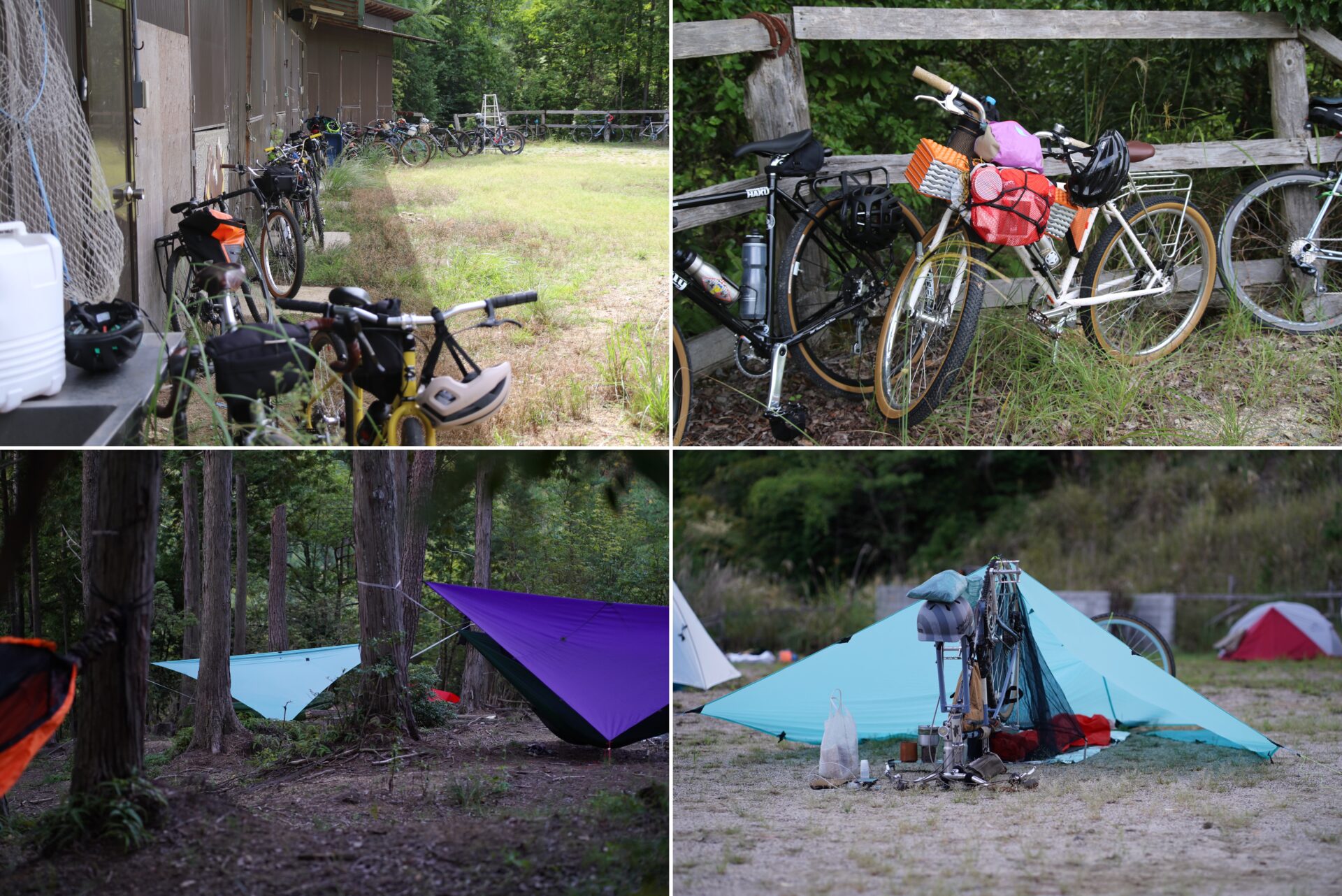 ハンモック/タープ/フロアレス/ビビィなどなど、ULシェルターを中心に思い思いの寝床を確保。