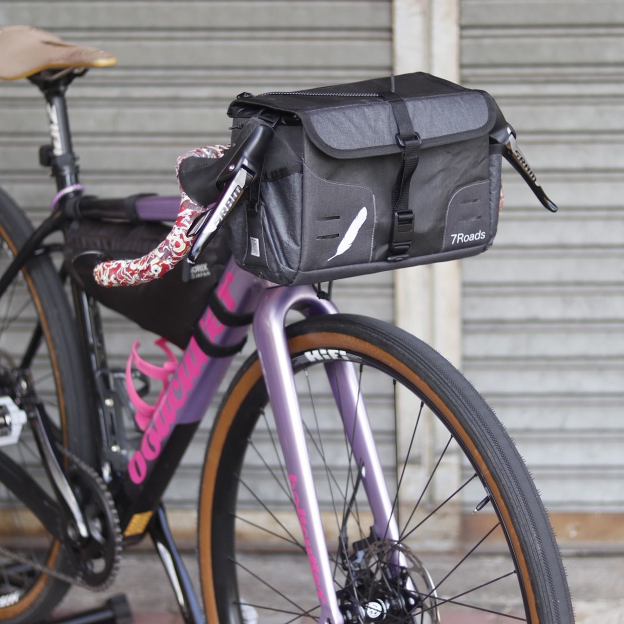 泥臭くなりがちなバイクパッキングアイテムですが、7R製品はレーシーなカーボンバイクにも似合うのが嬉しい。