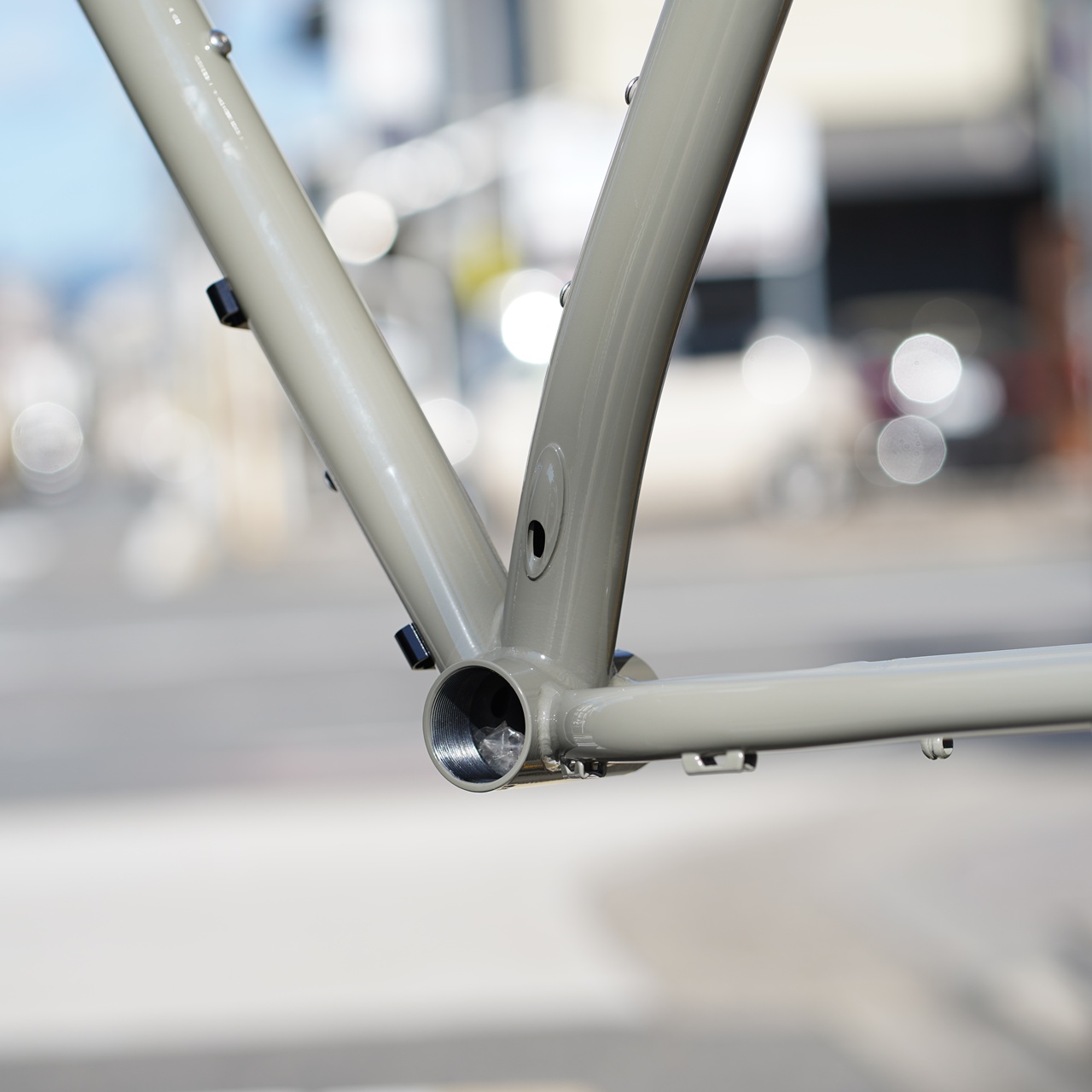 逆にトップチューブは横扁平。ダウンチューブもBB付近は横扁平。