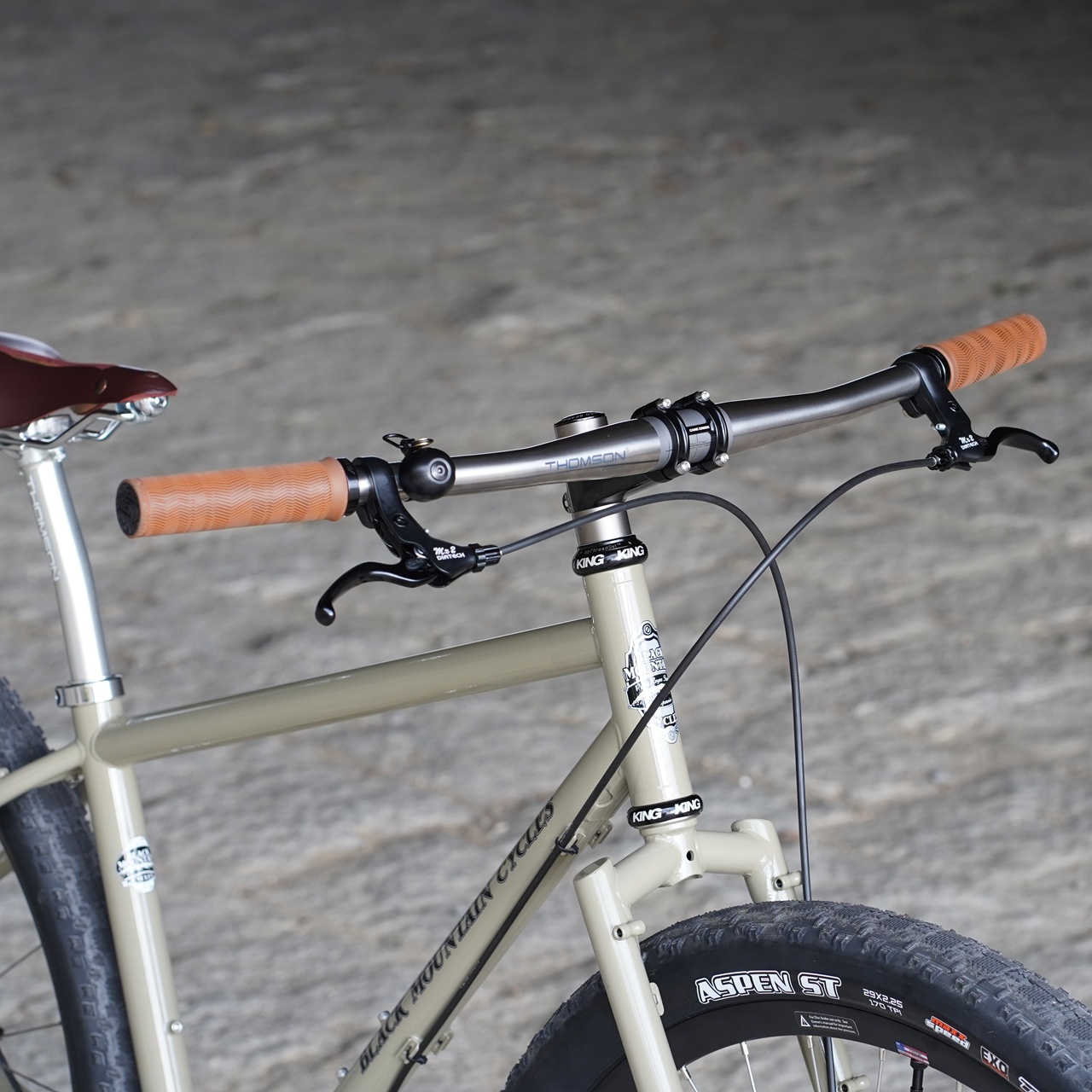 使いたくなるワクワクと軽さ、日常を耐える耐久性を考えてハンドルは THOMSON TITANIUM FLAT BAR.