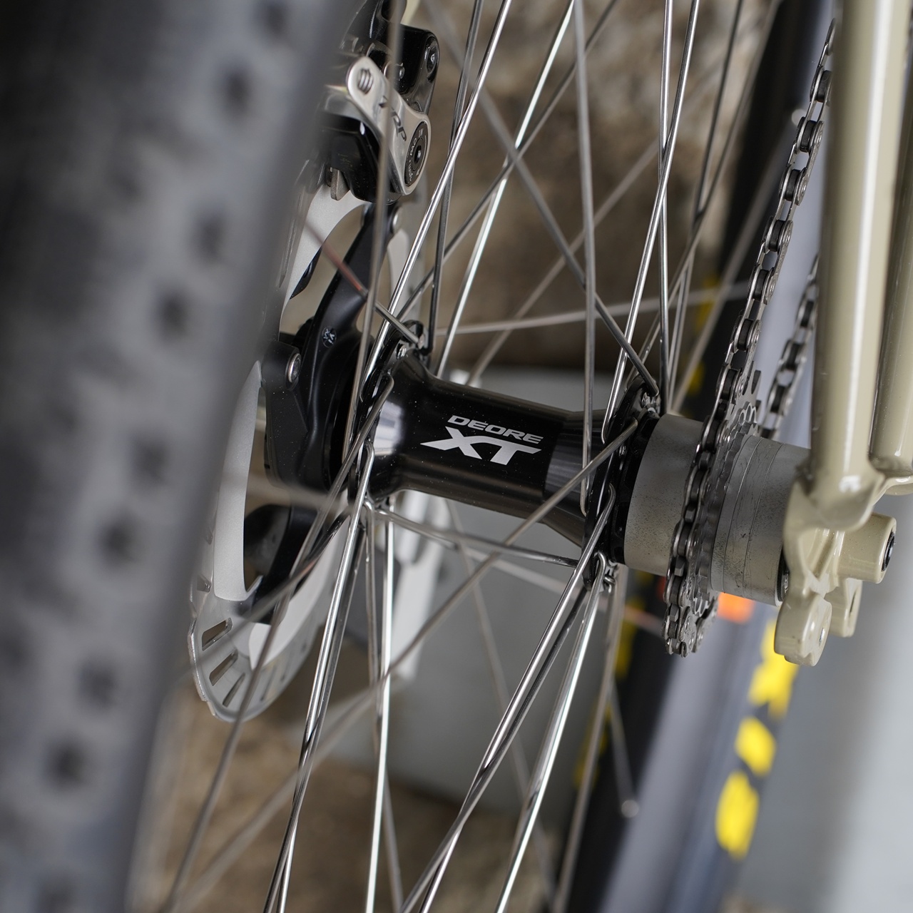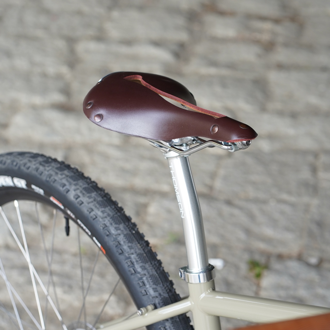 敢えて軽め細めのグラベル用リムに軽量なクロスカントリータイヤの組み合わせから生まれる軽快さが堪りません。