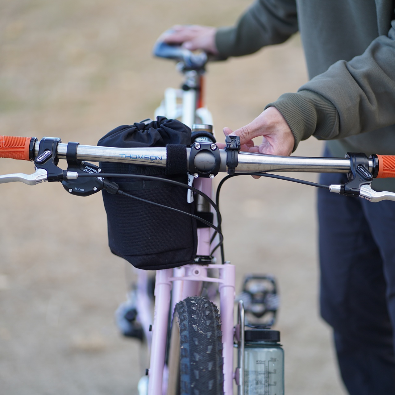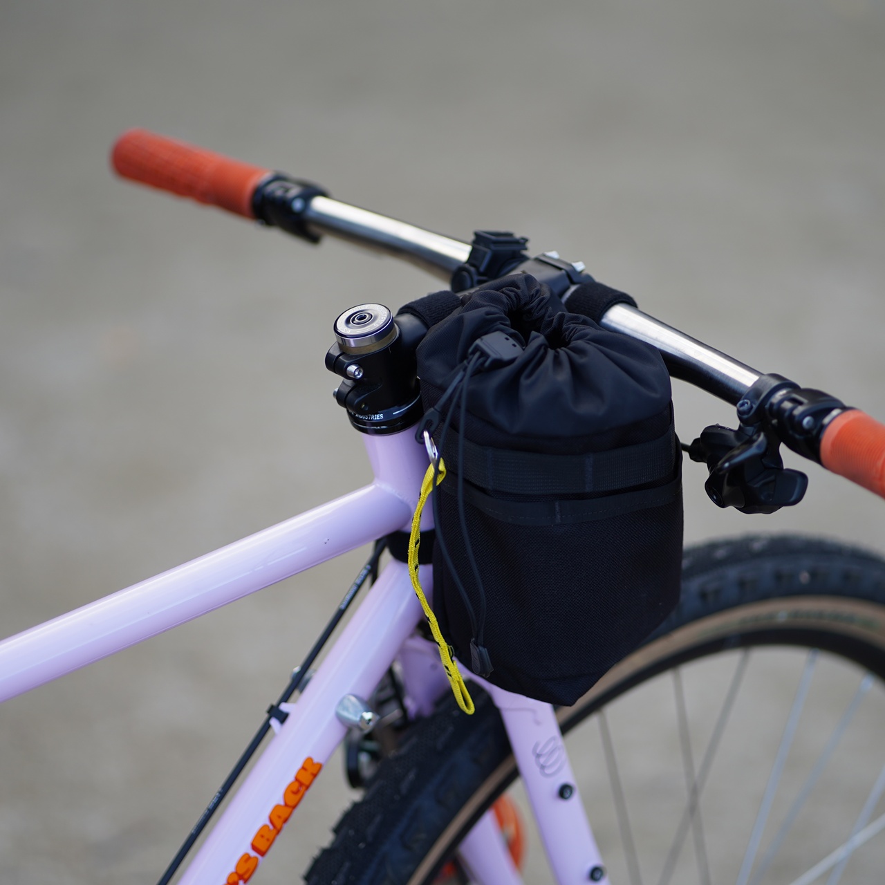バッグは「何も考えずなんでも放り込める」とご満悦のROAD RUNNER BAGS Auto-Pilot Stem Bag。