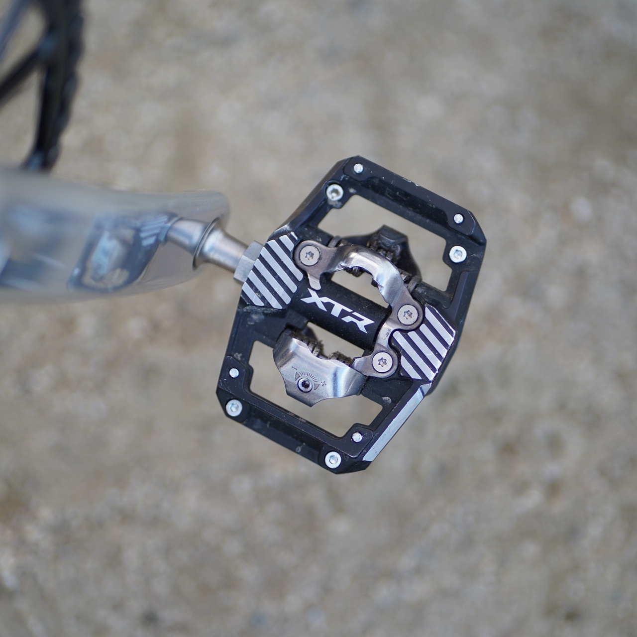 あとこれ、ペダルはXTRのケージ付最新モデル。(これいくんや…)申し訳程度に踏み面とピンがあるのがミソ。