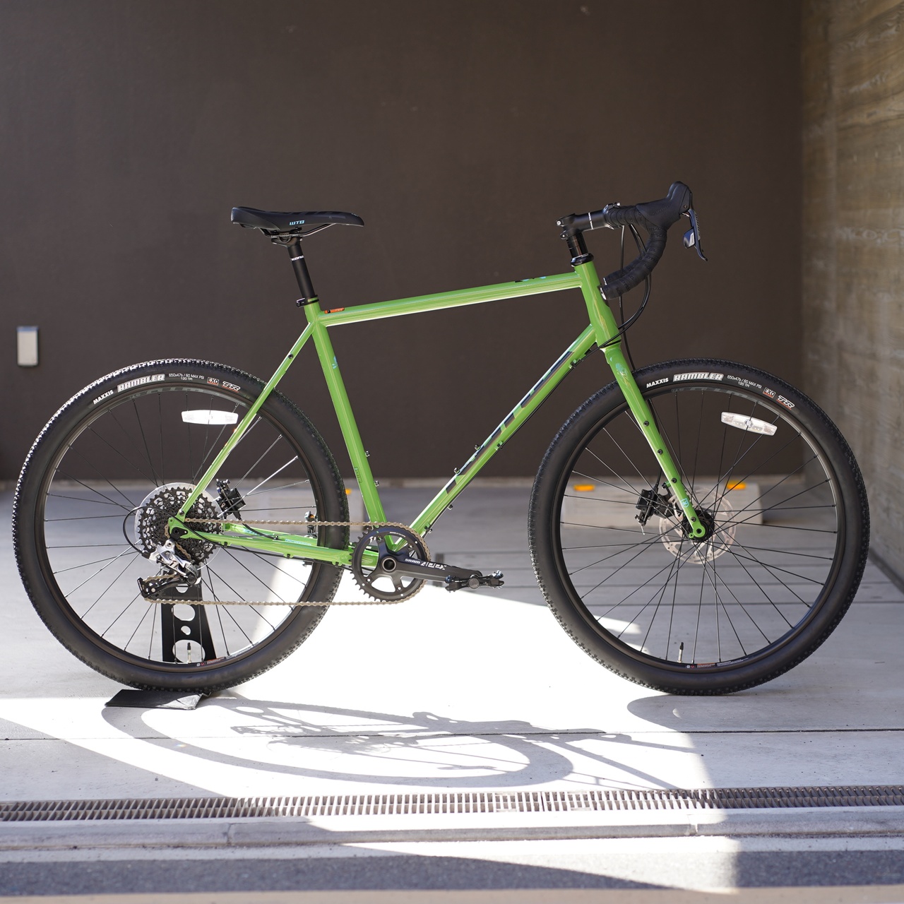 クロモリフレーム&フォークに29×2.25″タイヤを装着したモンスターグラベル。SHIMANO 油圧1×12速、ドロッパーシートポスト採用。ホイール規格は12x100/12x142スルーアクスルのロード系。