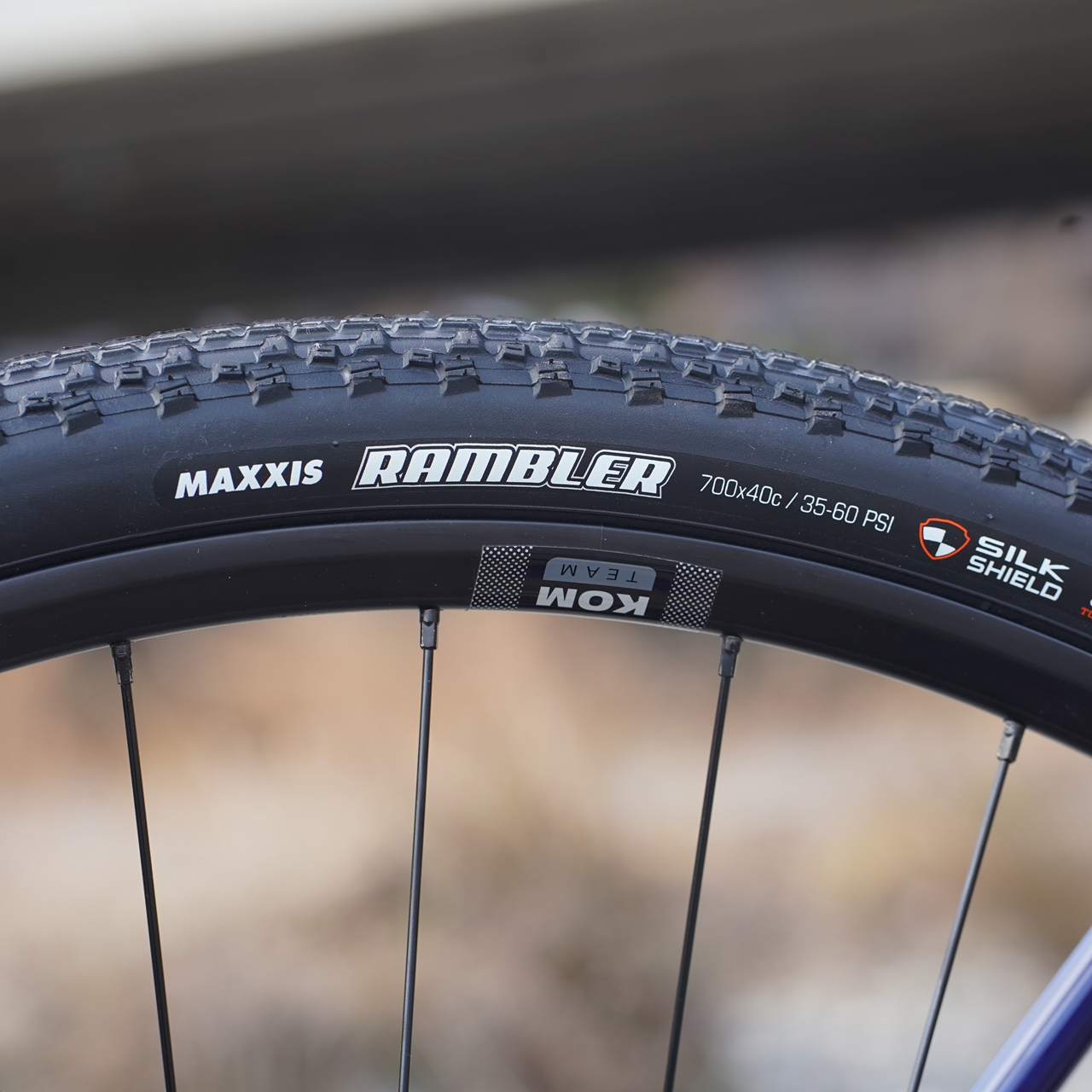 MAXXIS RAMBLERというタイヤチョイスもいい。オンの転がりもオフのグリップも素晴らしいバランス、最も完成度の高いタイヤのひとつだと考えています。