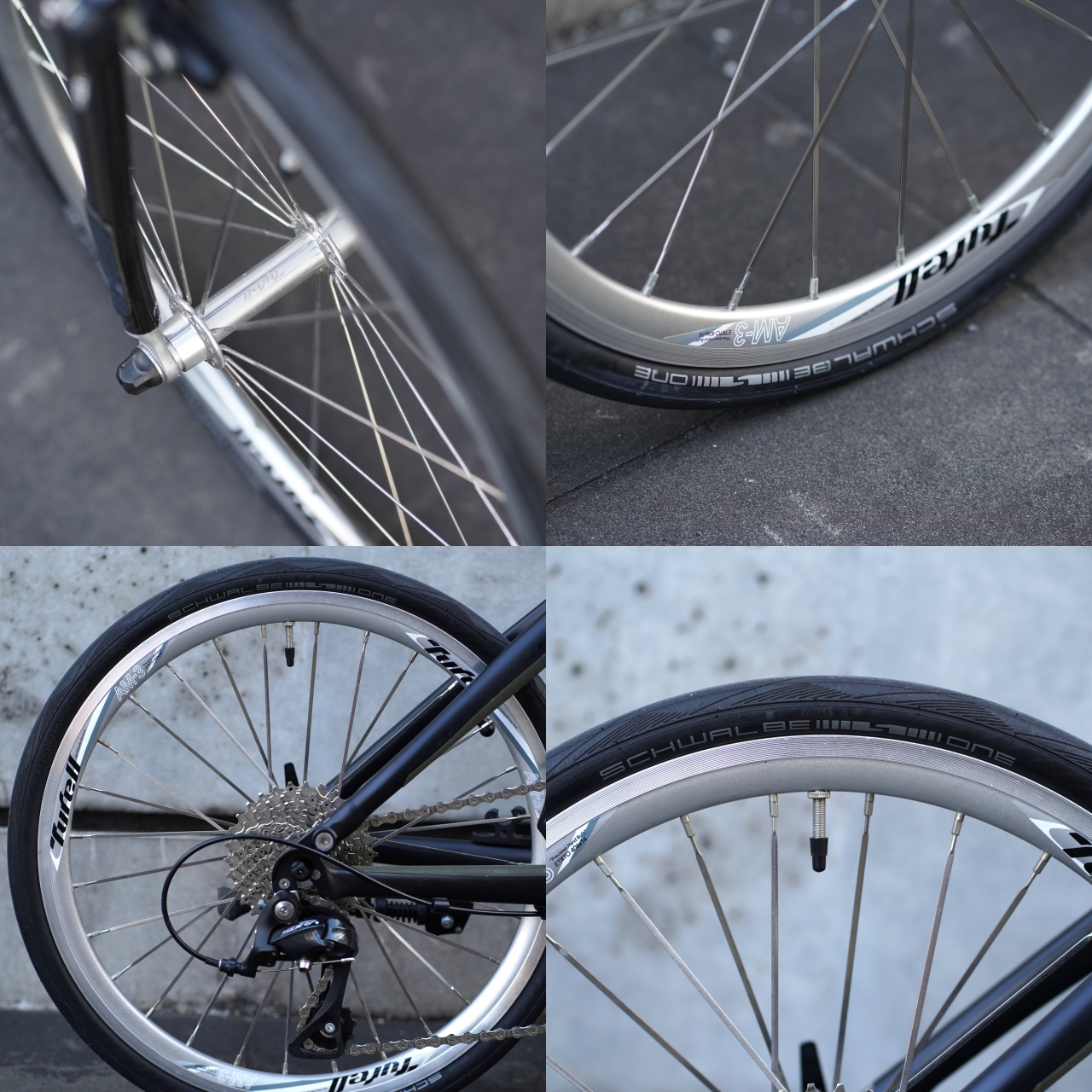 SCHWALBE ONE 20×1.10 でオンロードを滑る様に進む良き足回りです。