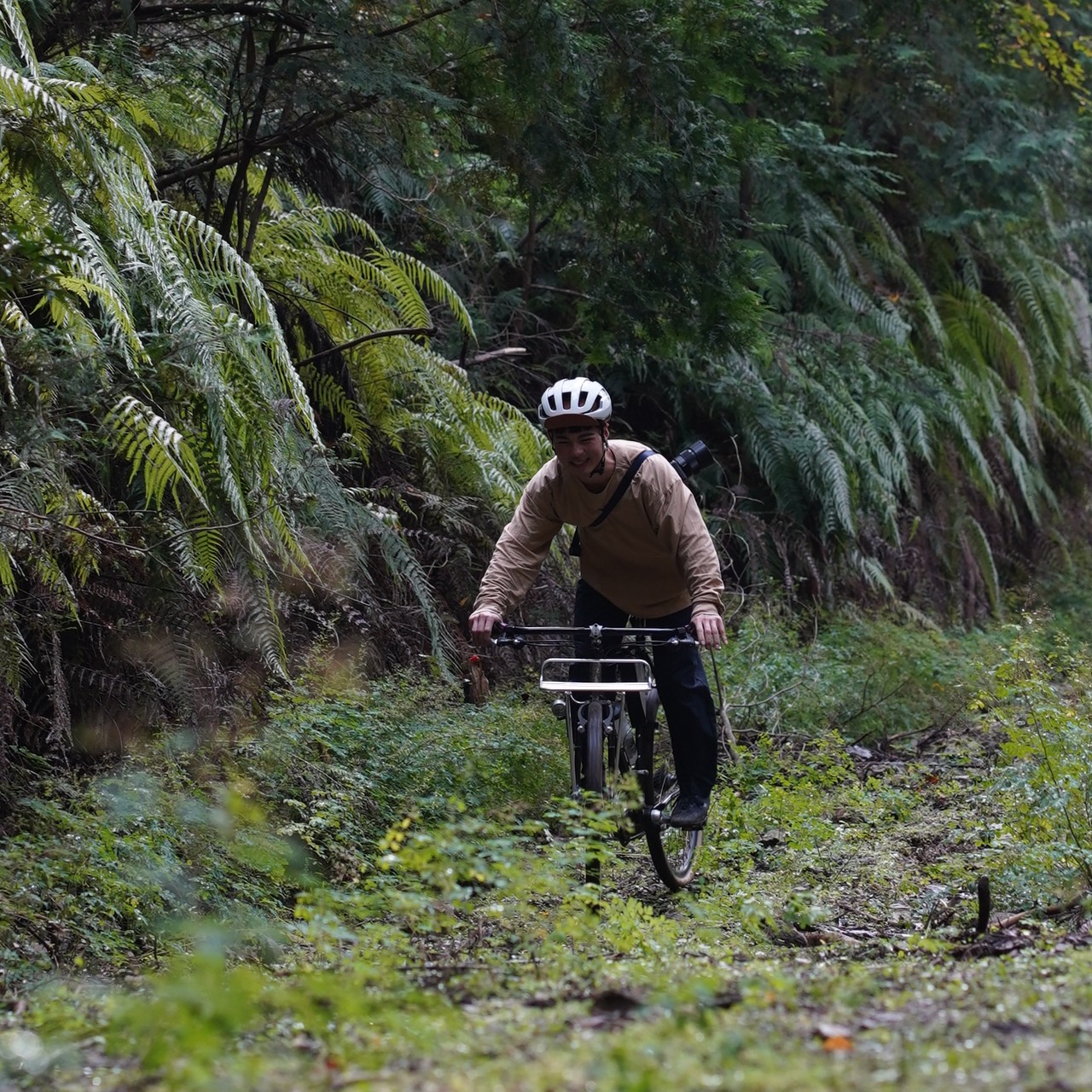 シンプルだからこそ土っぽい自転車や、コミューターバイクで被っていても違和感が出ないんです。