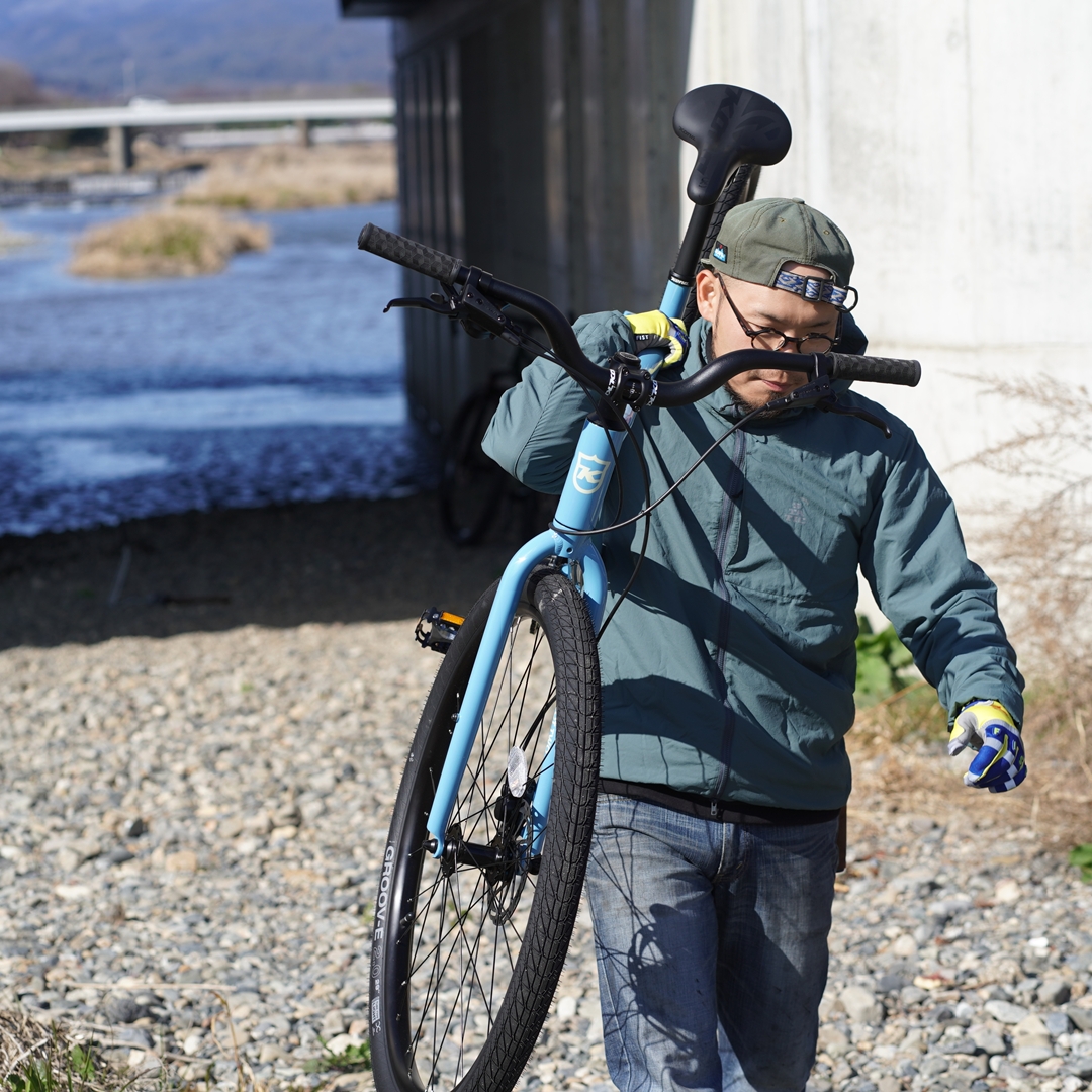 「入荷前にサイクルモードで試乗したフィーリングがとにかく良かった」とのこと。29er化されたことにより鈍重になるかと思いきや、グイグイ進む軽快な乗り味!