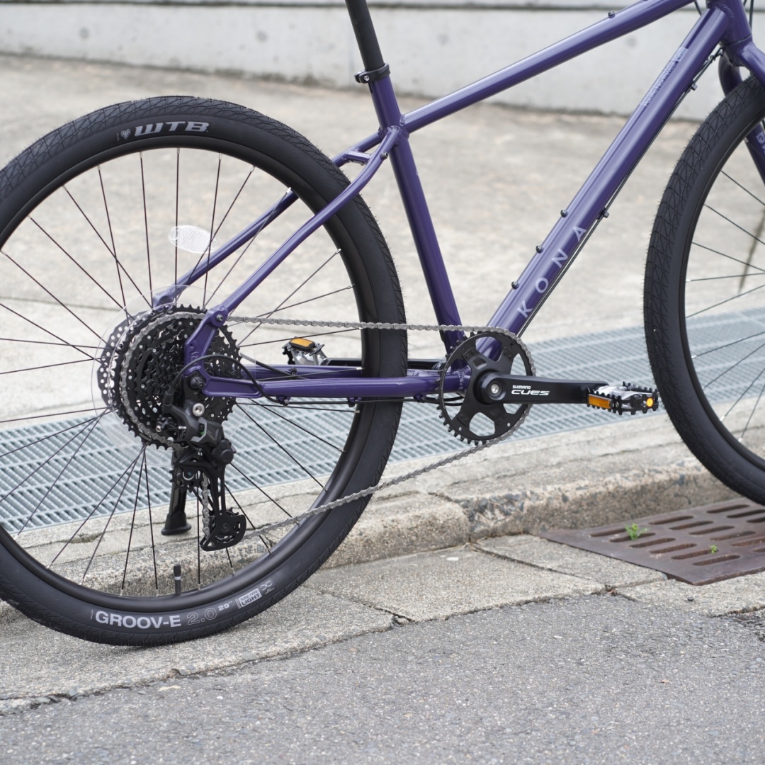 メインコンポはSHIMANO CUES 1×10速。耐久性にも優れているため、普段使いとの相性よし。ギアレンジもよりワイドになっているのでしっかりアドベンチャーライドや荷物の積載も安心です。