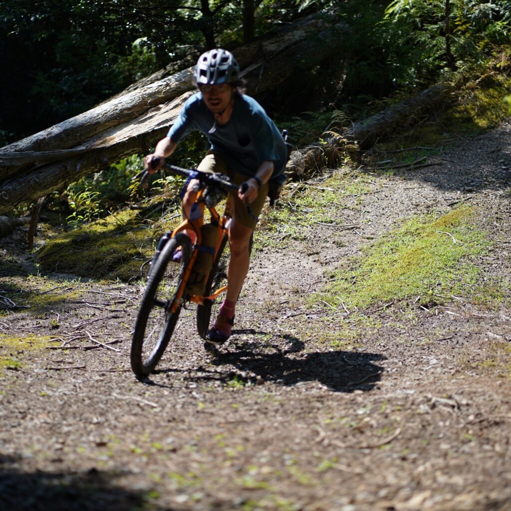 木の根や急斜面の連続するトレイルでも結構遊べます。