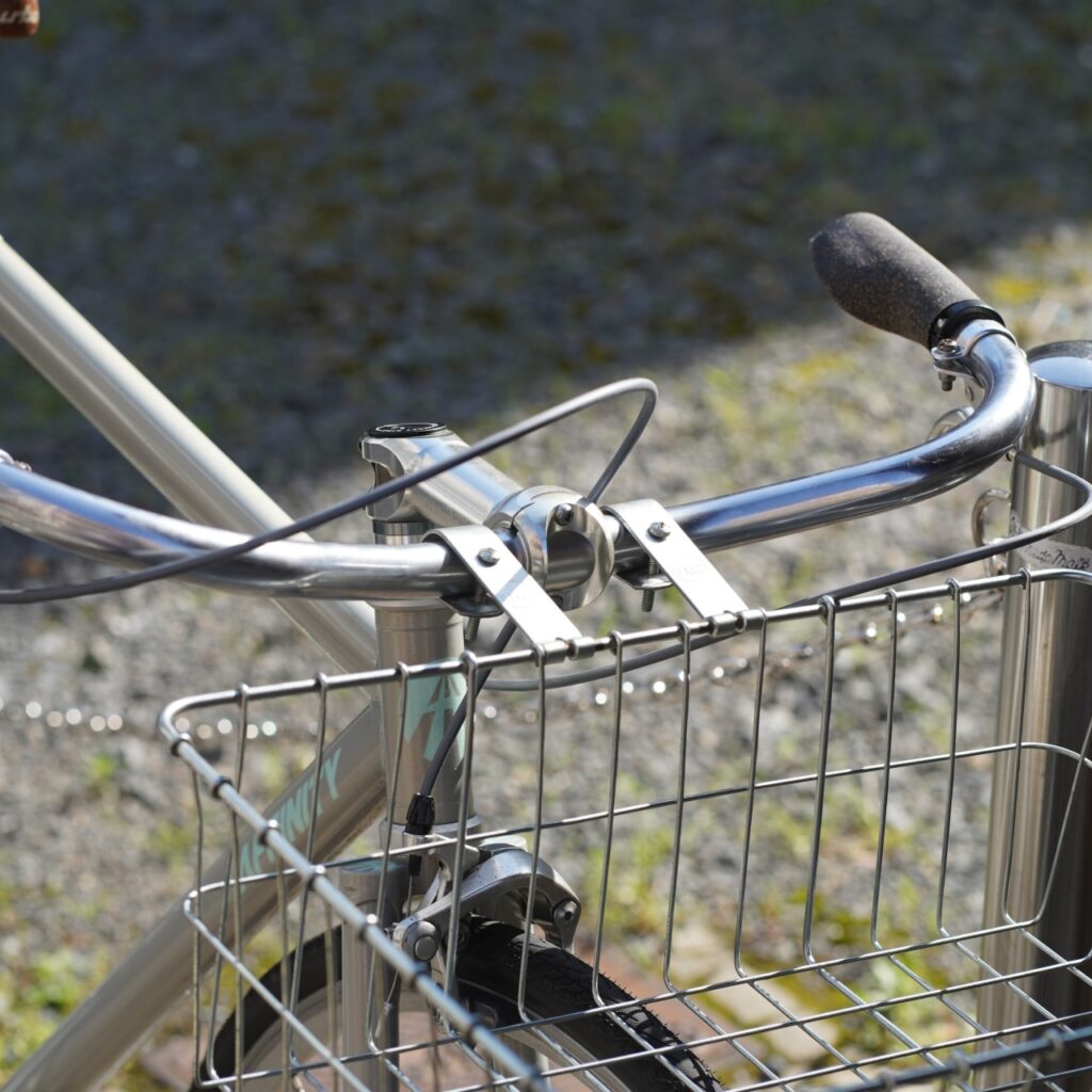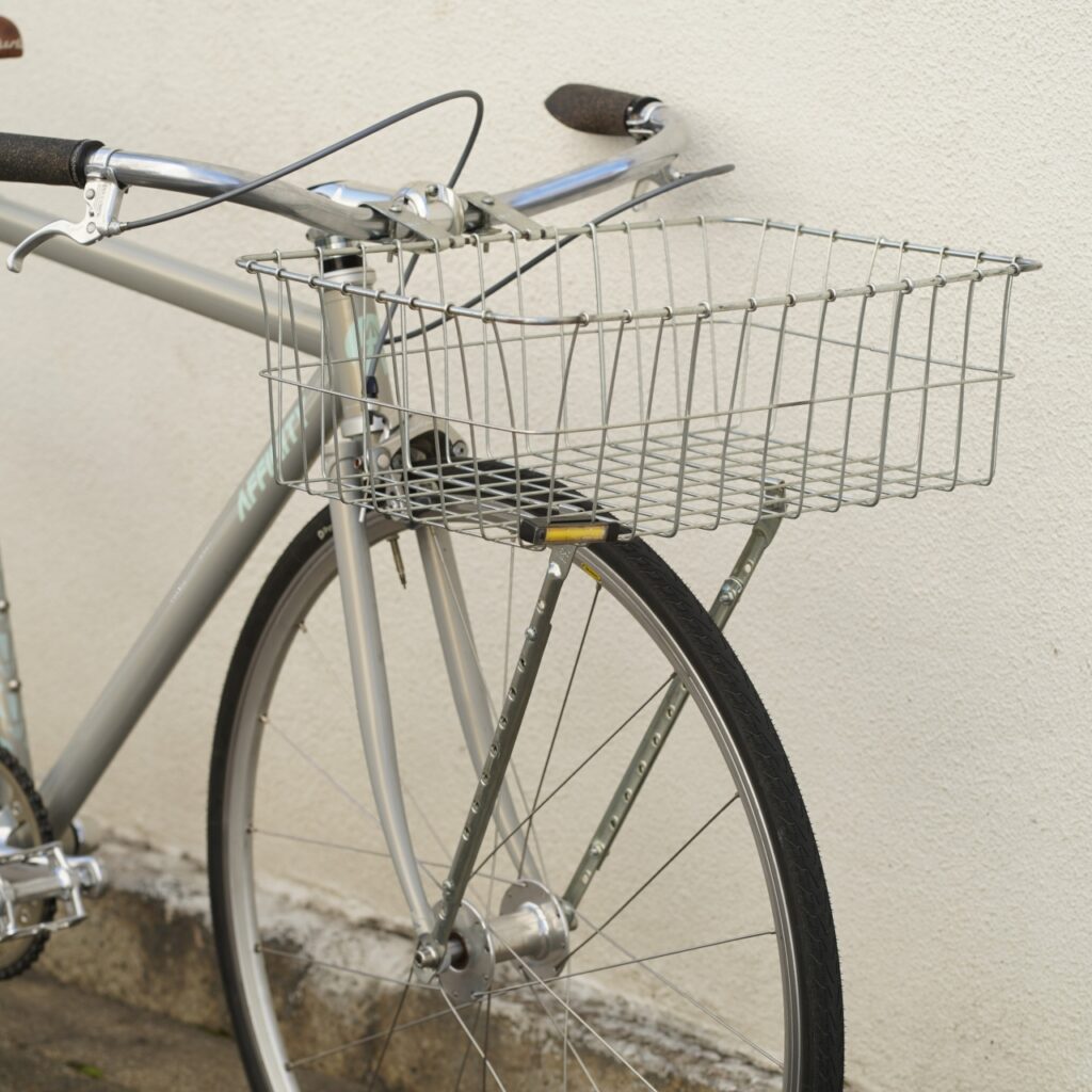 ドカっと大きなカゴと細身のクロモリフレームの組み合わせのアンバランスさが可愛い!