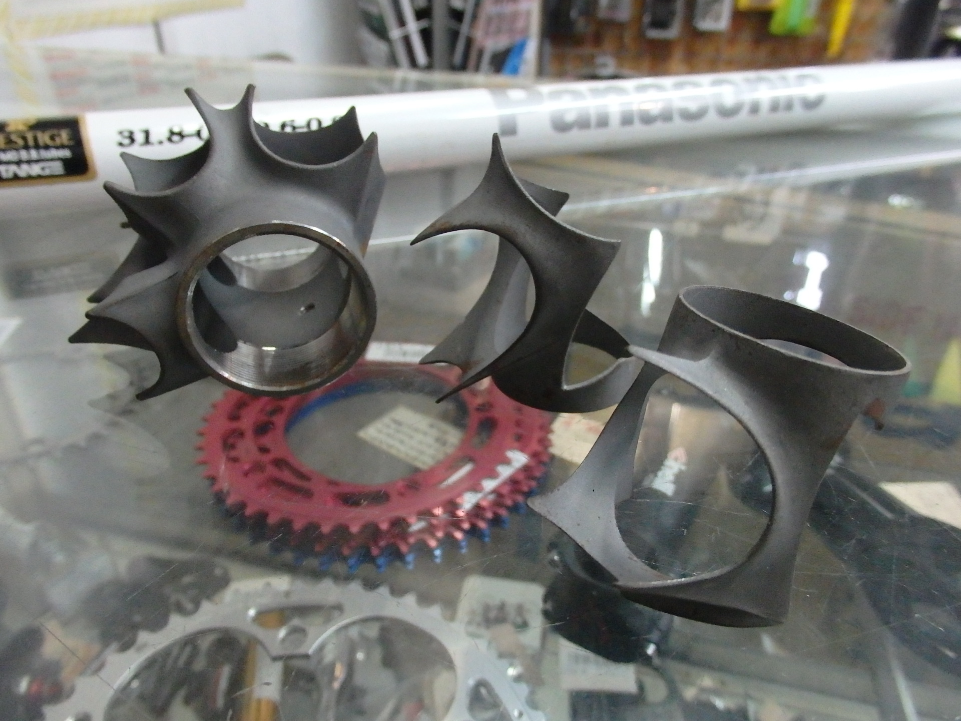 パイプ表面にラグ上の段差模様のあるバテッドパイプは、応力解析を行い、肉厚を薄くできる部分、厚みが必要な部分を見極め、弊社独自の技術で肉厚をそぎ落としたパイプです(製法は企業秘密です!)