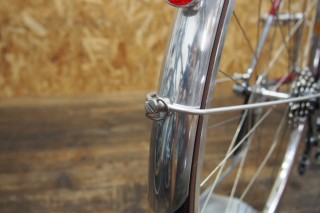 現行ではまず見ることの無いフロントフォーク左側のダイナモ台座。