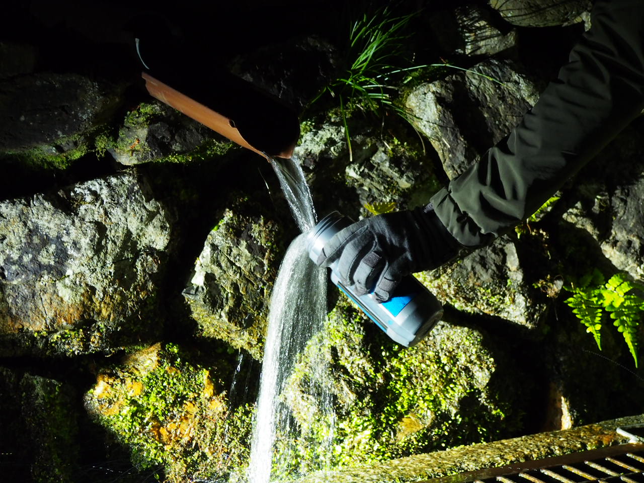 もちろんのこと、京見峠下り途中の湧き水場では寝起きに飲むコーヒーの水をゲット。