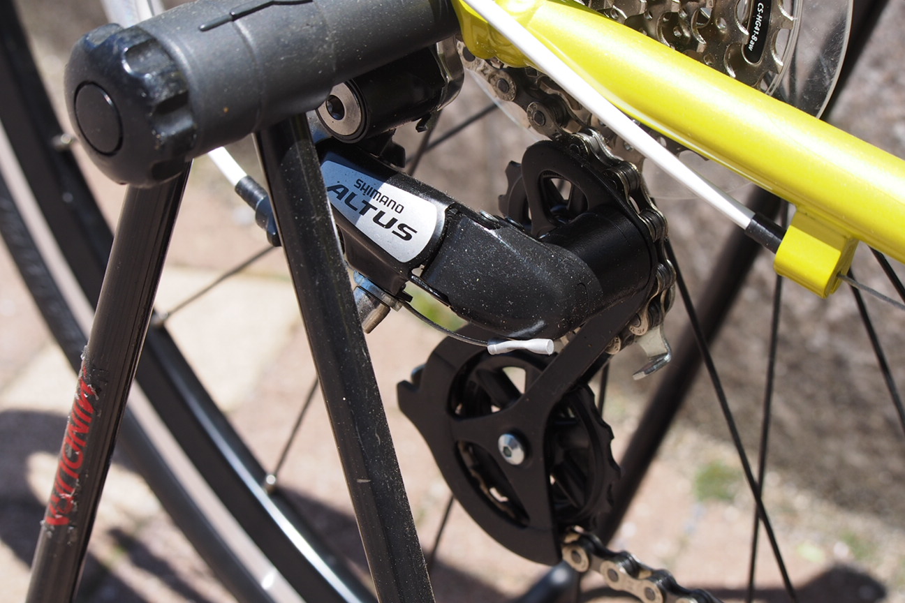 画像真ん中を斜めに横切るシートステーは、よく見るとちょっぴり湾曲しています。
