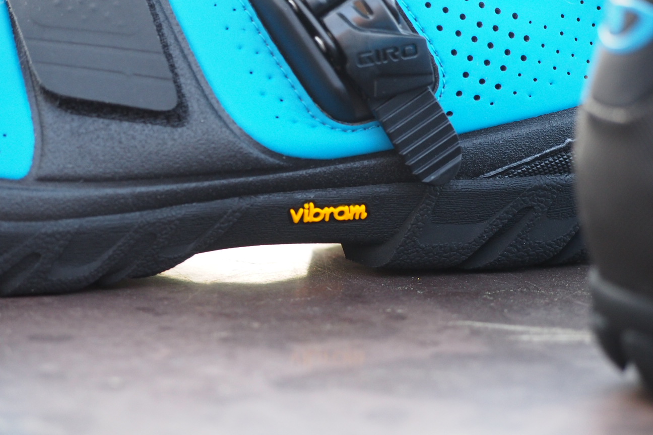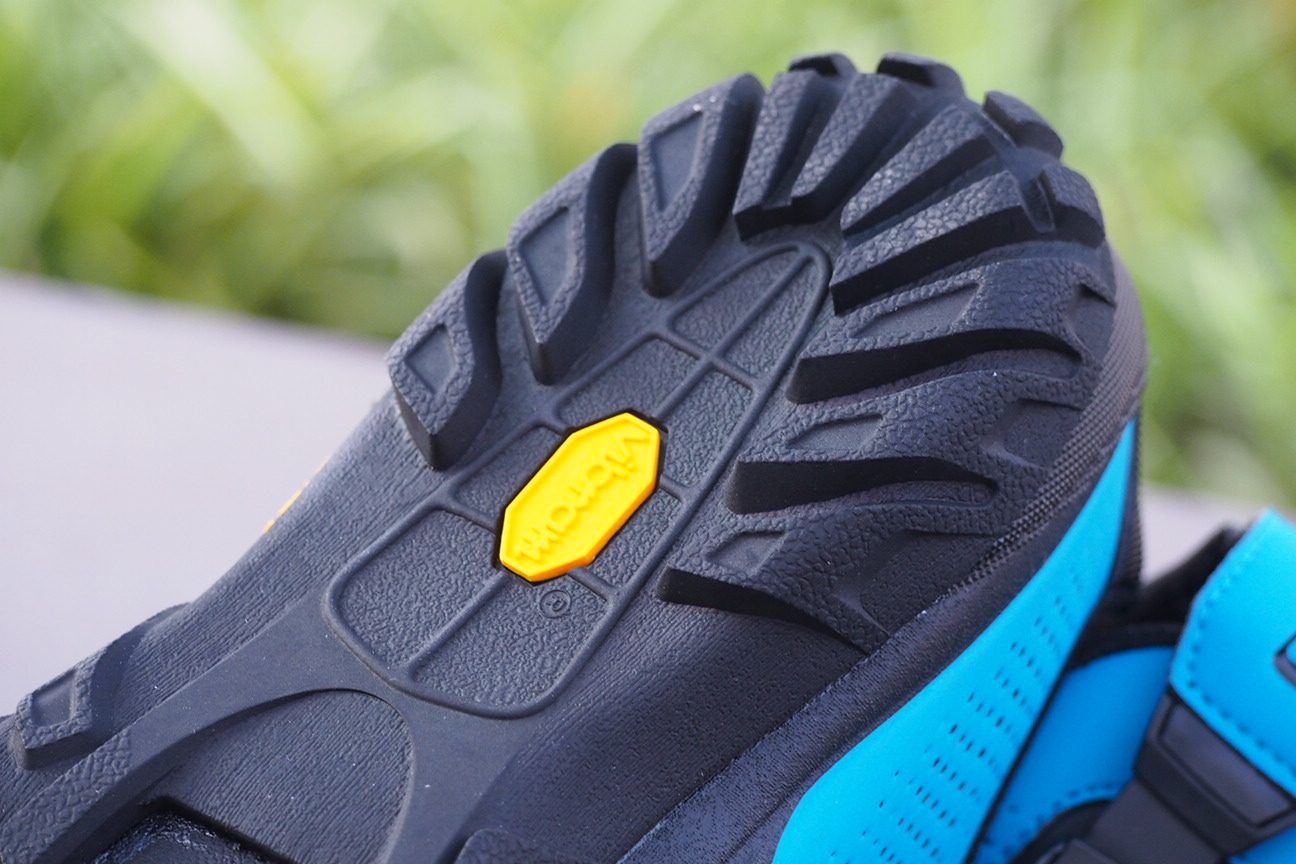 VIBRAMソール。 トレッキングシューズなどにはかなり高い確率で採用されております。その驚異的な耐久性と粘着性は既に業界のアイコンとなっているほど。岩場や塗れた木の上などの上でもしっかりとグリップ。通常のSPDシューズのソールでは不可能なグリップ力を誇り、抜群の歩きやすさを確保します。