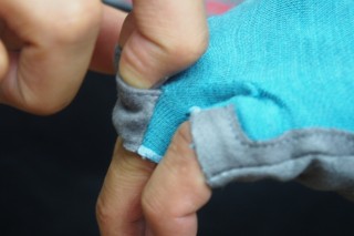 汗拭き様に親指の部分は吸水性の高いタオル地のマイクロファイバーが採用されています。