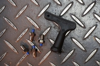 (左)マッドコンディションやトレイルで更なるグリップをもたらすトースパイクキット