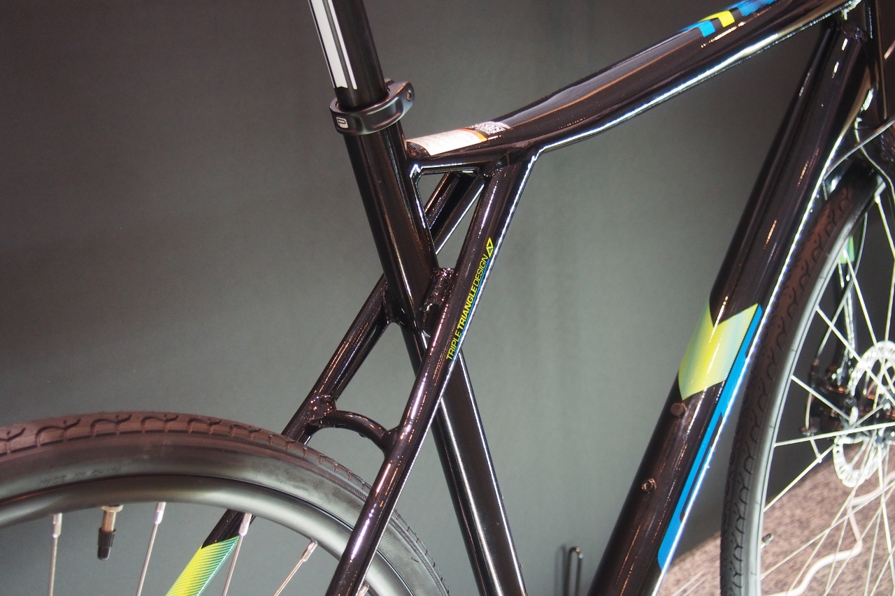 GTだからこそのMTB DNAを与える独自のトリプルトライアングルフレームを採用し、しなりと剛性のバランスが最高峰のフルカーボンフレーム。