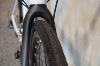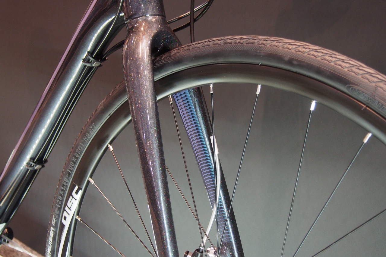 こちらもエンドにむかって細くベンドするフルカーボンフォーク。