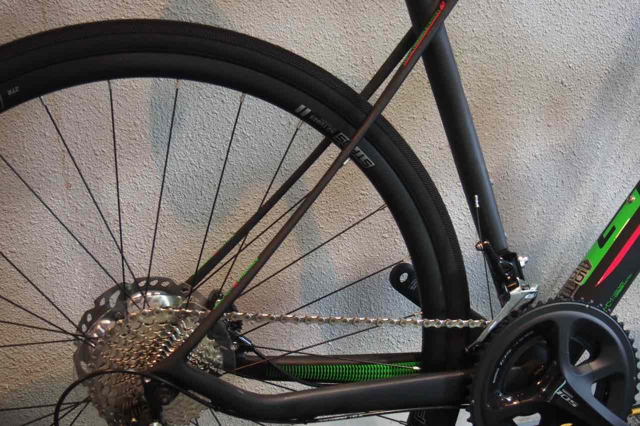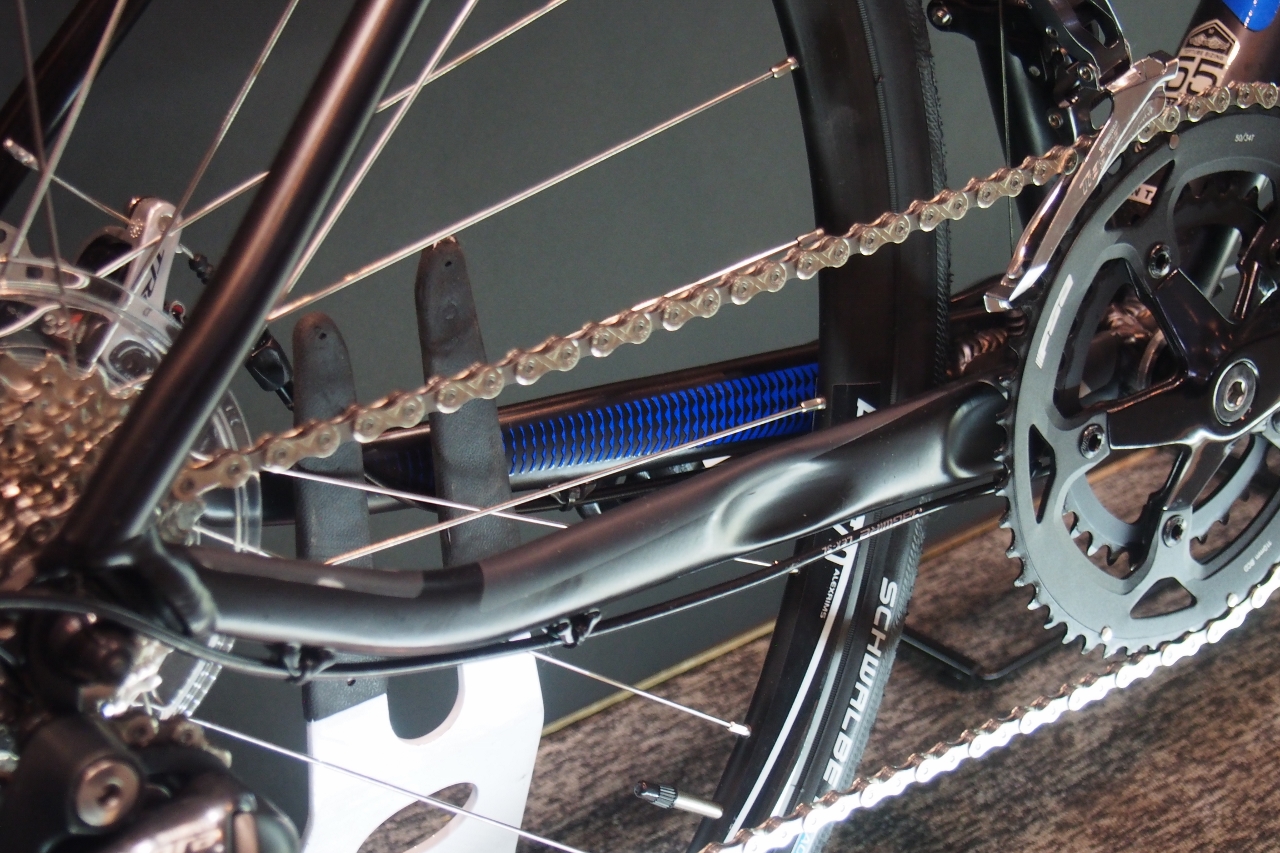 アルミフレーム仕様よりも更に細いチェーンステー。