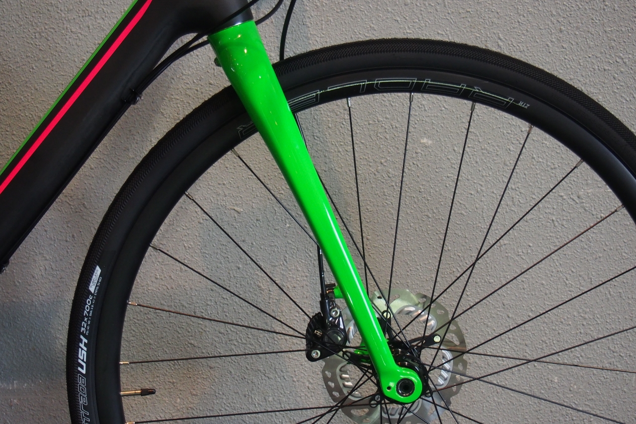 ■105コンポ+アルミフレーム+軽量カーボンフォークに、ワイヤー引き油圧ブレーキ採用モデル