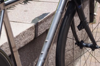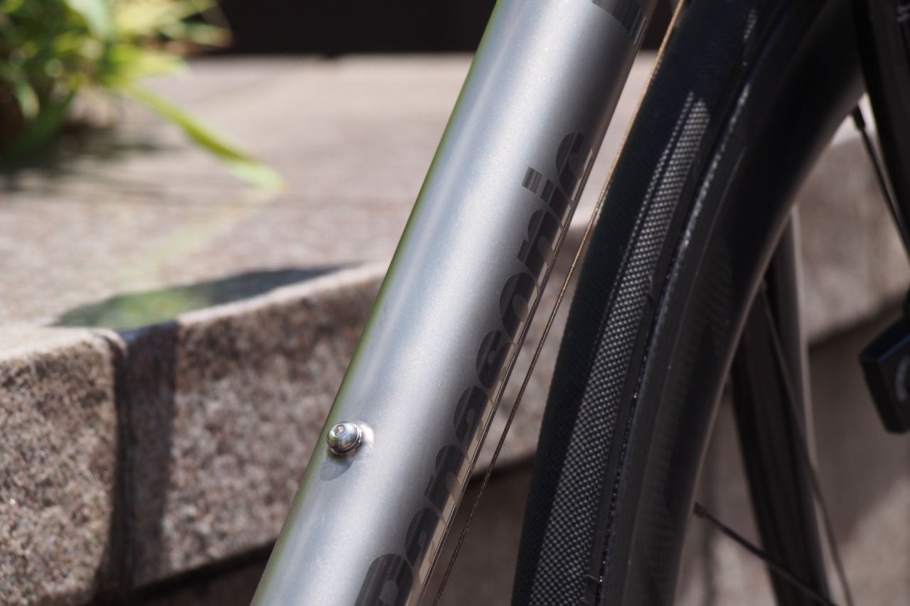 前から見た時の肉厚がすごいパナソニックのカーボンフォーク。