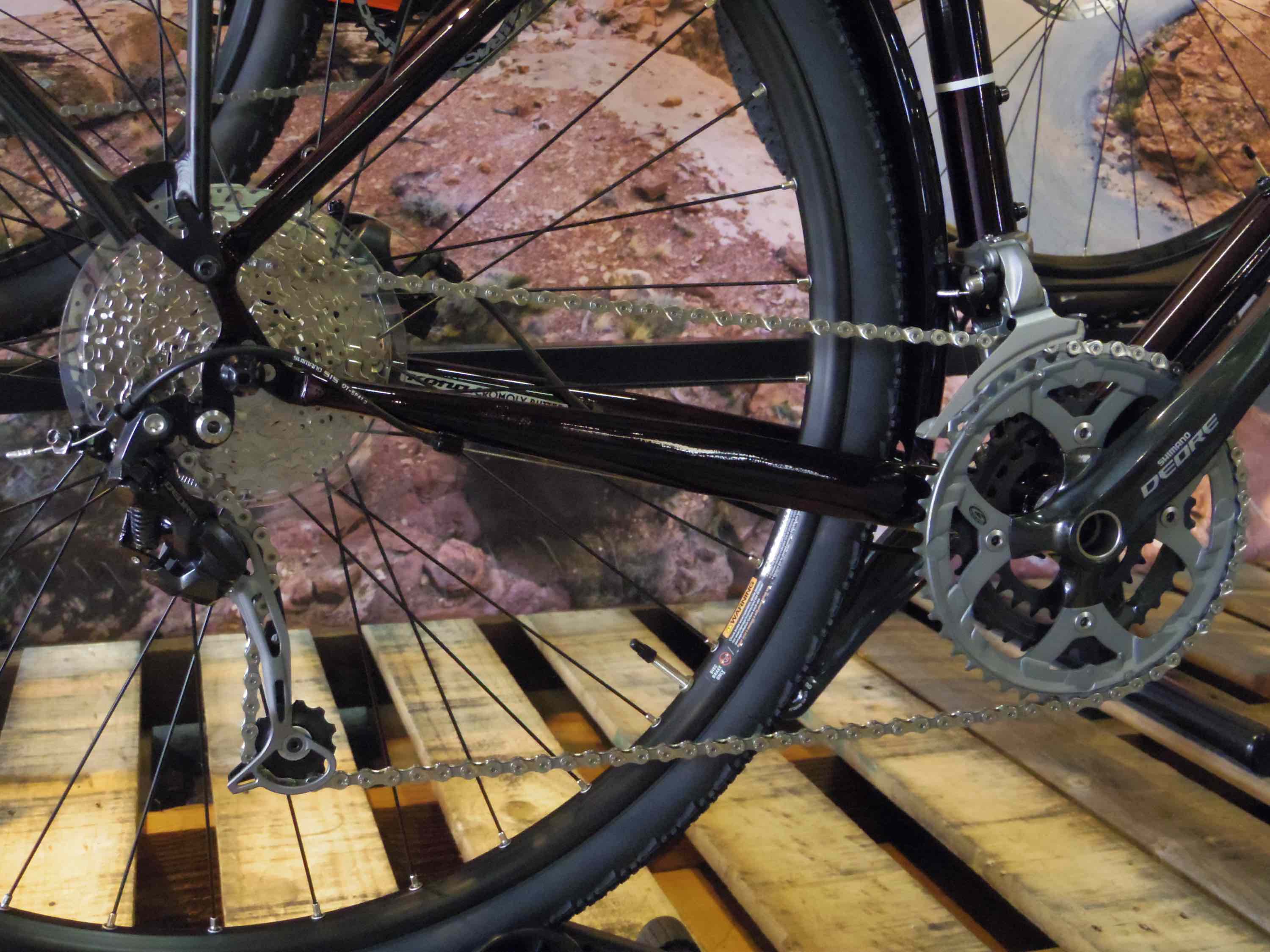 よりヘビーな積載、よりハードなツーリングに耐えうる様、MTBコンポであるshimano DEORE3×10速でワイドなギヤレシオと耐久性を確保しています。