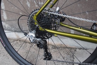 セットされるチェーンリングは36T、リアスプロケットは10-42とワイドレシオで、よりロー側に振ったセッティングはMTBに近いセッティング。