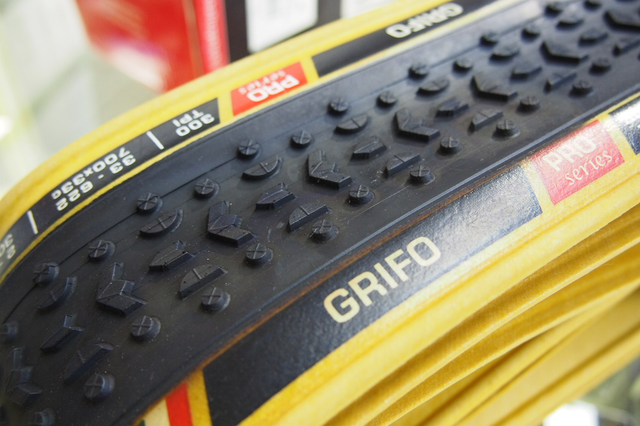 様々な路面コンディションにオールマイティに対応する上記定番タイヤGRIFOのパターンをそのままに、TPIや生産工場の違いにより大幅にコストダウンできており、むしろハイエンドモデルよりも耐久性に優れビギナーの方やトレーニング用途にオススメです。