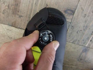 他社ブランドでもすっかり御馴染みとなっているダイヤルによるアジャストでフィットさせるシステムを、横方向のみにならず、縦方向にもアジャストを可能とし、