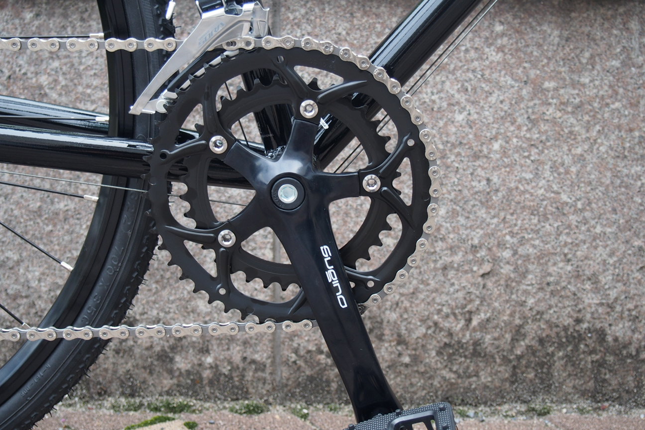 乗り手の体重、パワーを受けとめるクランク部には品質の高い、SUGINO製XD2000Dが採用。ギアは 48/36Tとツーリングや街乗りにも使いやすい仕様になっております。