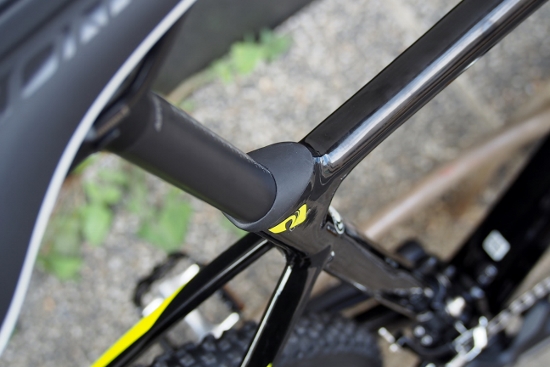 ダウンチューブは横扁平のボックス形状でこれまた快適性の高そうなデザイン。