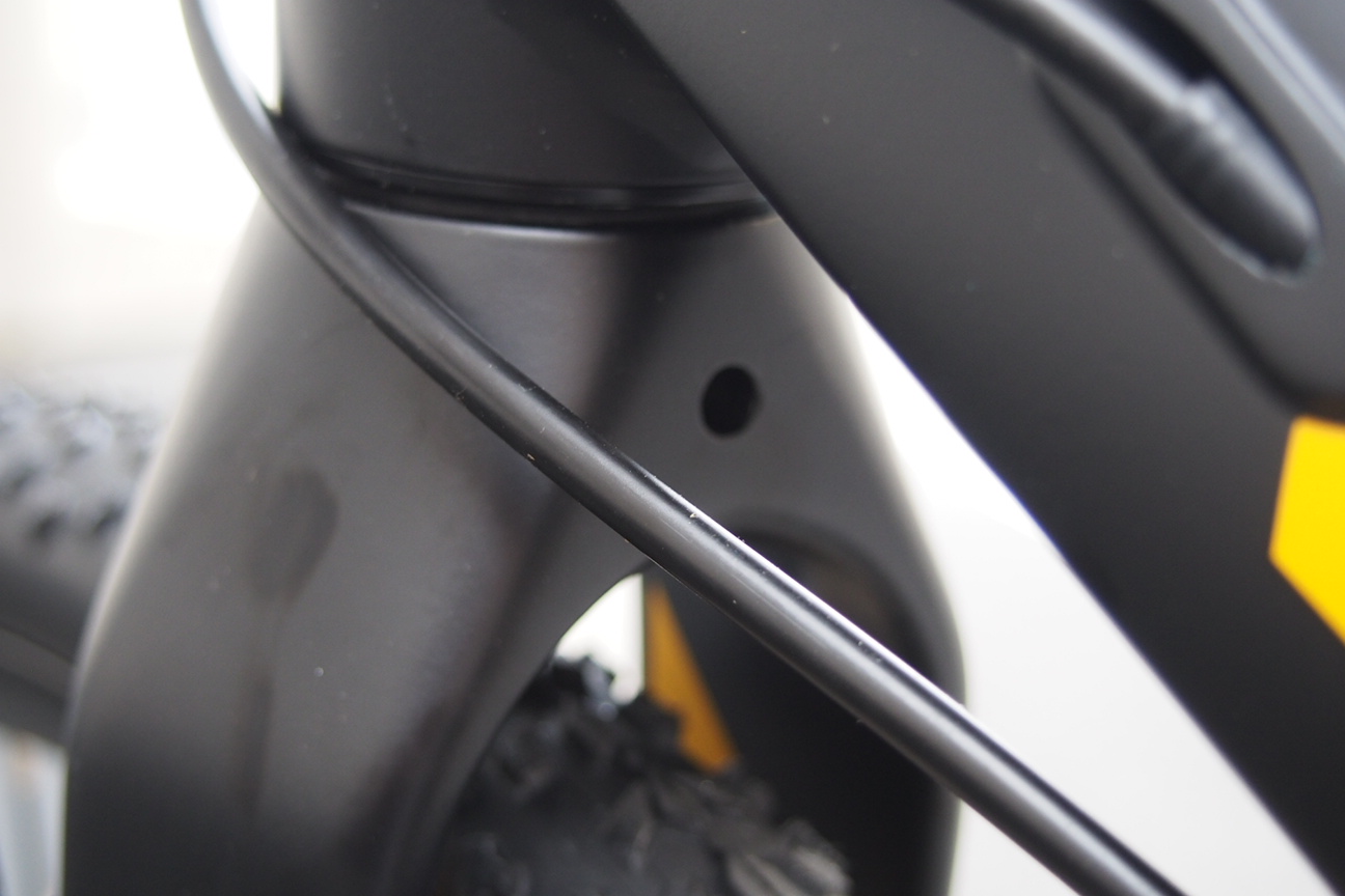 変速ケーブル類はフレームに内蔵され、またブレーキケーブルはフルアウター仕様。
