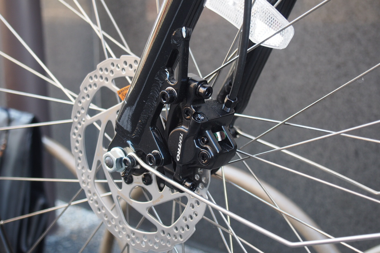 UTEにはMTBにもよく採用される油圧ディスクブレーキが採用。通常のリムブレーキに比べ制動力自体高く、また雨天時でもその制動力が落ちにくくあります。