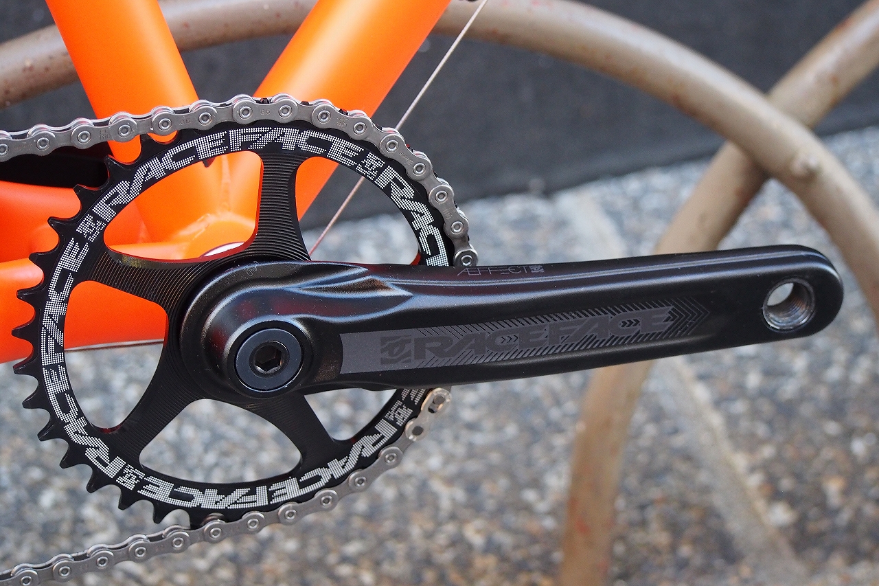 評価高いMTBパーツを多く輩出するRACEFACEクランク/36Tギアと、リア10-42Tの11SPEED仕様。