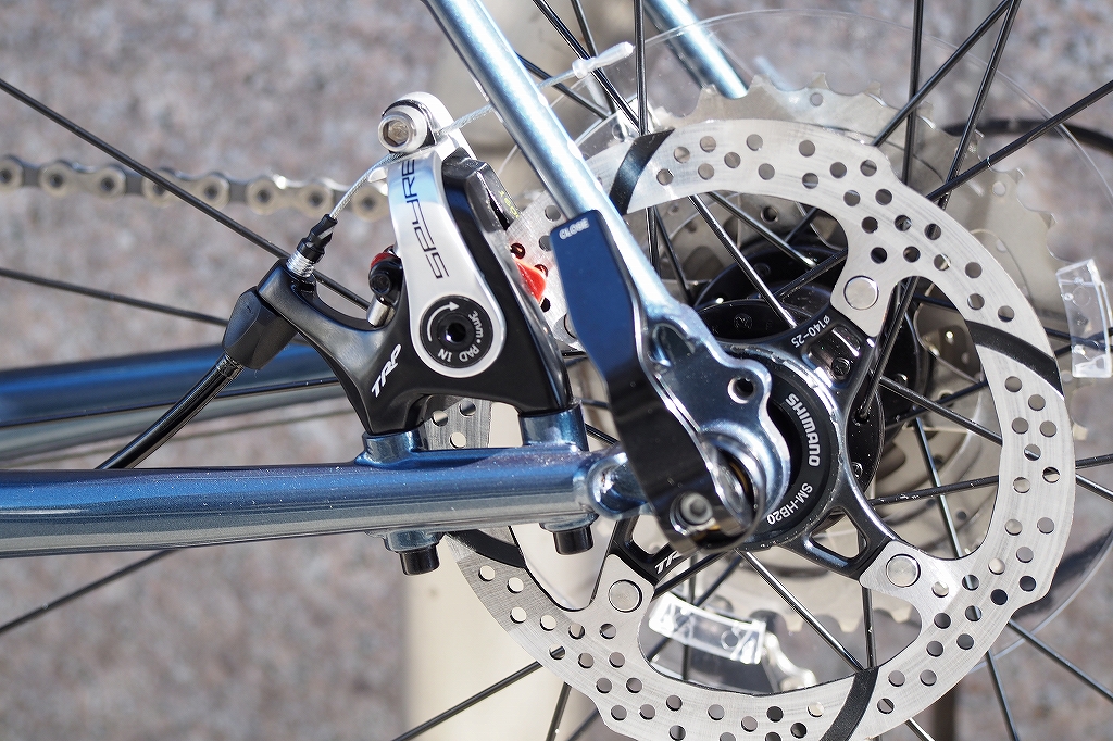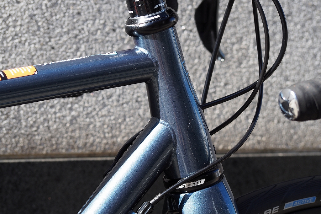 かといって決して過剰な堅さはなく、シートステーの扁平つぶしや、あくまでもスチールフレームとしての細いパイプ外径の恩恵もあってか振動の吸収性も非常に高く乗り心地も良い。