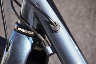 フロントフォーク、フレームともにブレーキワイヤーはフルアウターの内蔵。今後のカスタムとして新型ST-RS405シフトレバー+BR-R405の油圧ブレーキ化も可能となります。