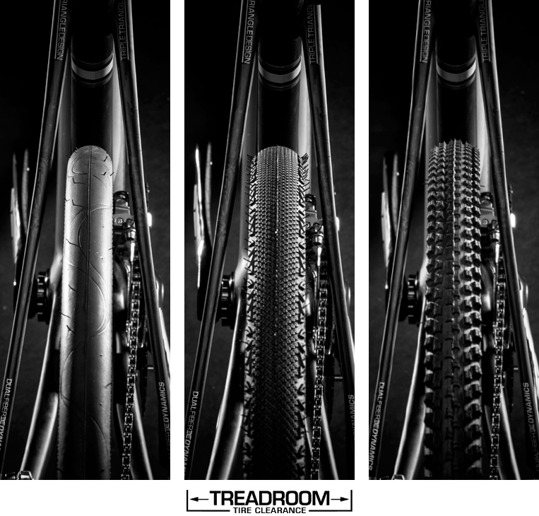 ●チェーンステー長:415mm(48.51)、430mm(53.55)、最大タイヤクリアランス35Cにより、ロードのような軽快走行性能を保ちながらも、