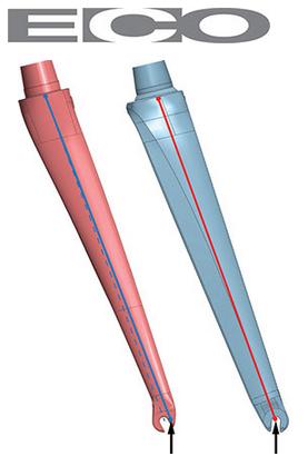 更にこのフロントフォークには、フォークデザインを前方に 押し出し、路面からの振動をより多く吸収 させる特性をもたせるのと同時に前輪のハブ軸を後方に 寄せたことで、ハンドリング性能を決定するトレール値を 通常のフォークと同様にするJAMIS独自の「ECO」というテクノロジーに加え、