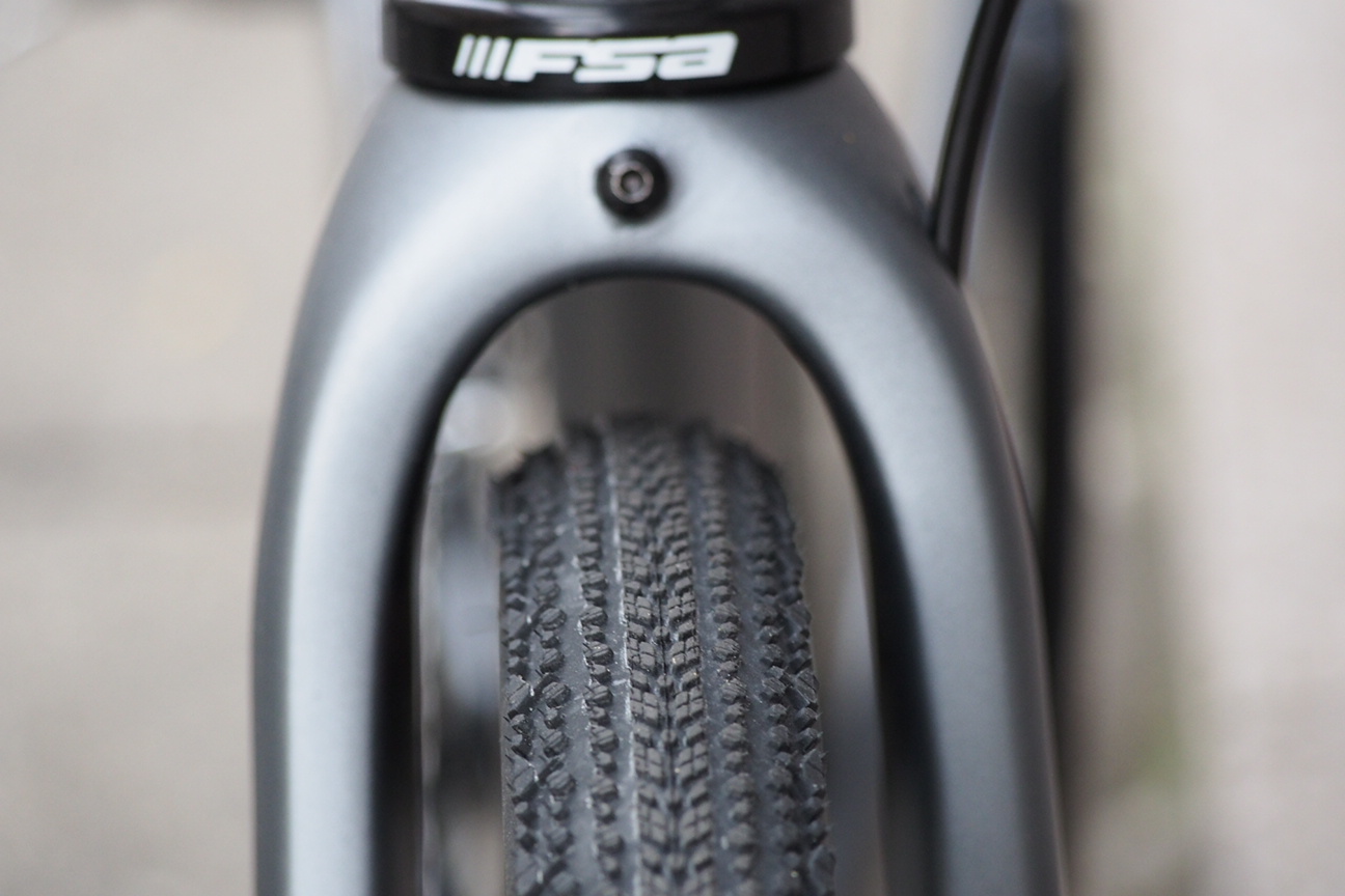 ロードという言葉を使用しながらも、タイヤは700x36Cとやや太めのタイヤが採用され、フレームとのクリアランスは最大40Cまでのサイズアップが可能。