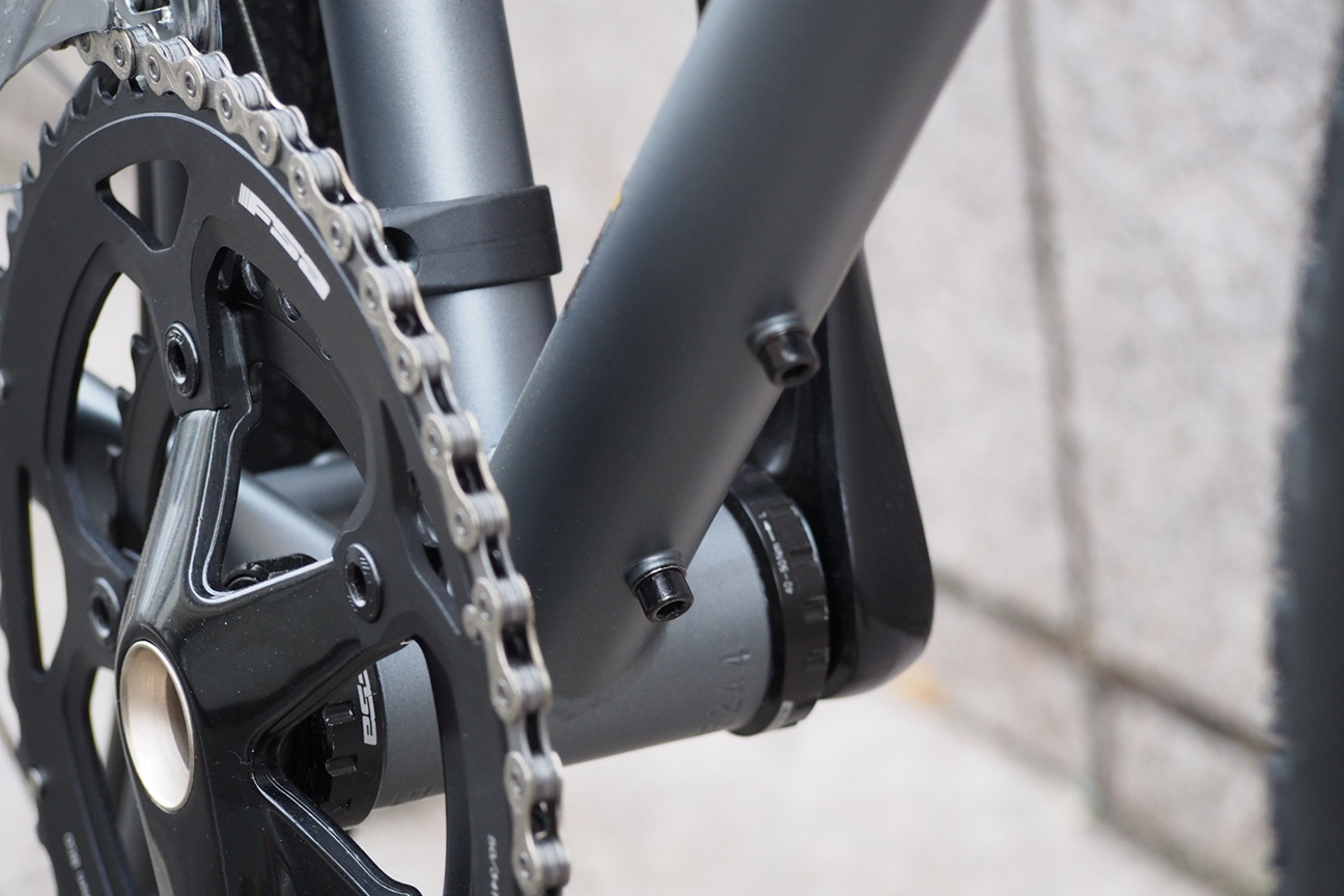 ギア比はフロント50-34T、リア11-32T。所謂通常のツーリングより更に重いギアを踏むことが出来、また逆に通常のロードバイクよりも更に軽いギアを踏むことが出来る、この車体のキャラクターにおいては非常に利に適ったギア比となっております。