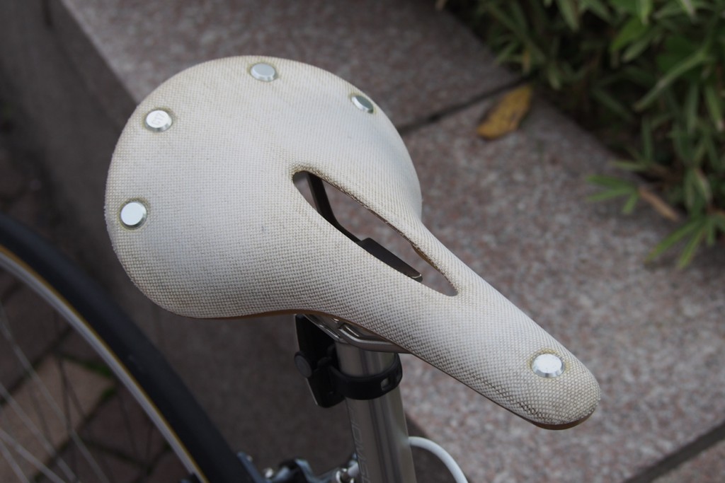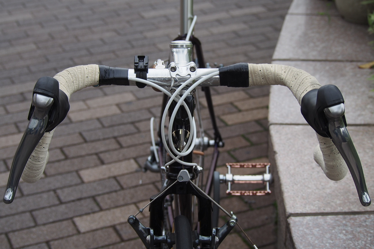 肩上がりのランドナーバーにサドルはBrooks Cambium C17 Carvedを合わせ、