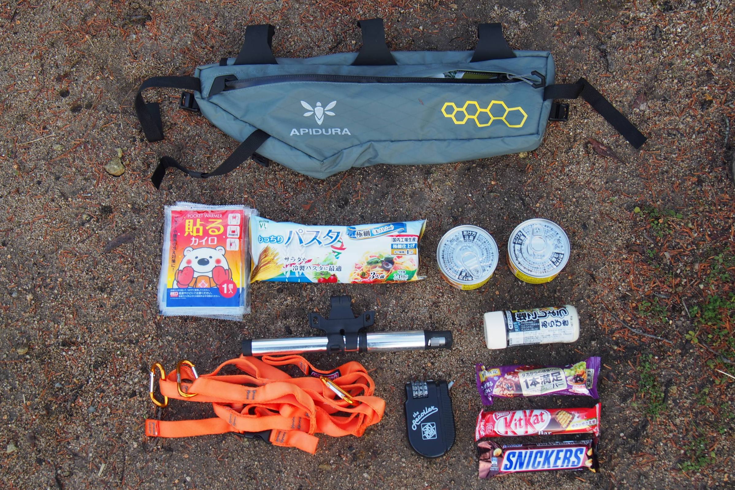 使用バイクパッキングアイテムは、英国ブランド【APIDURA/アピデューラ】で統一。